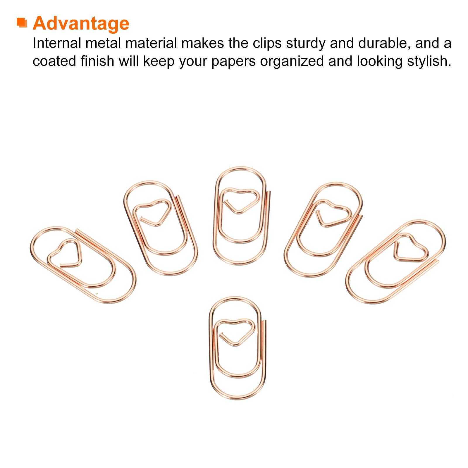 100Pcs Paper Clip Heart-Shaped Cute Decorative Fun Clips Bookmarks 0.8Inch Silver Tone/Rose Gold/Bronze for Organize Office Home