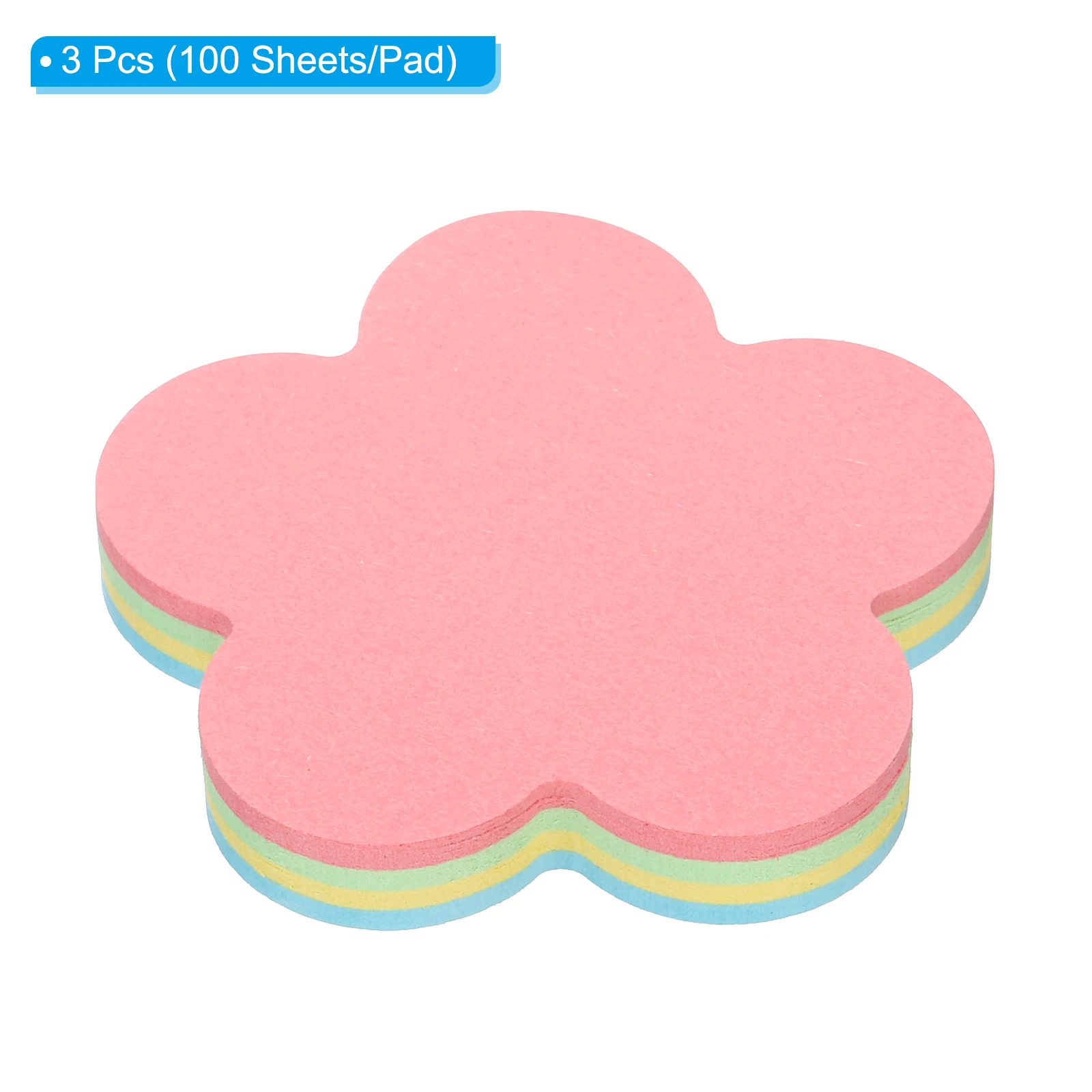 3/6Pads 2.7x2.7 Inch Flower Shape Sticky Notes Cute Self-Stick Memo Pads Bright Colorful 100 Sheets/Pad for Home Office 4 Colors