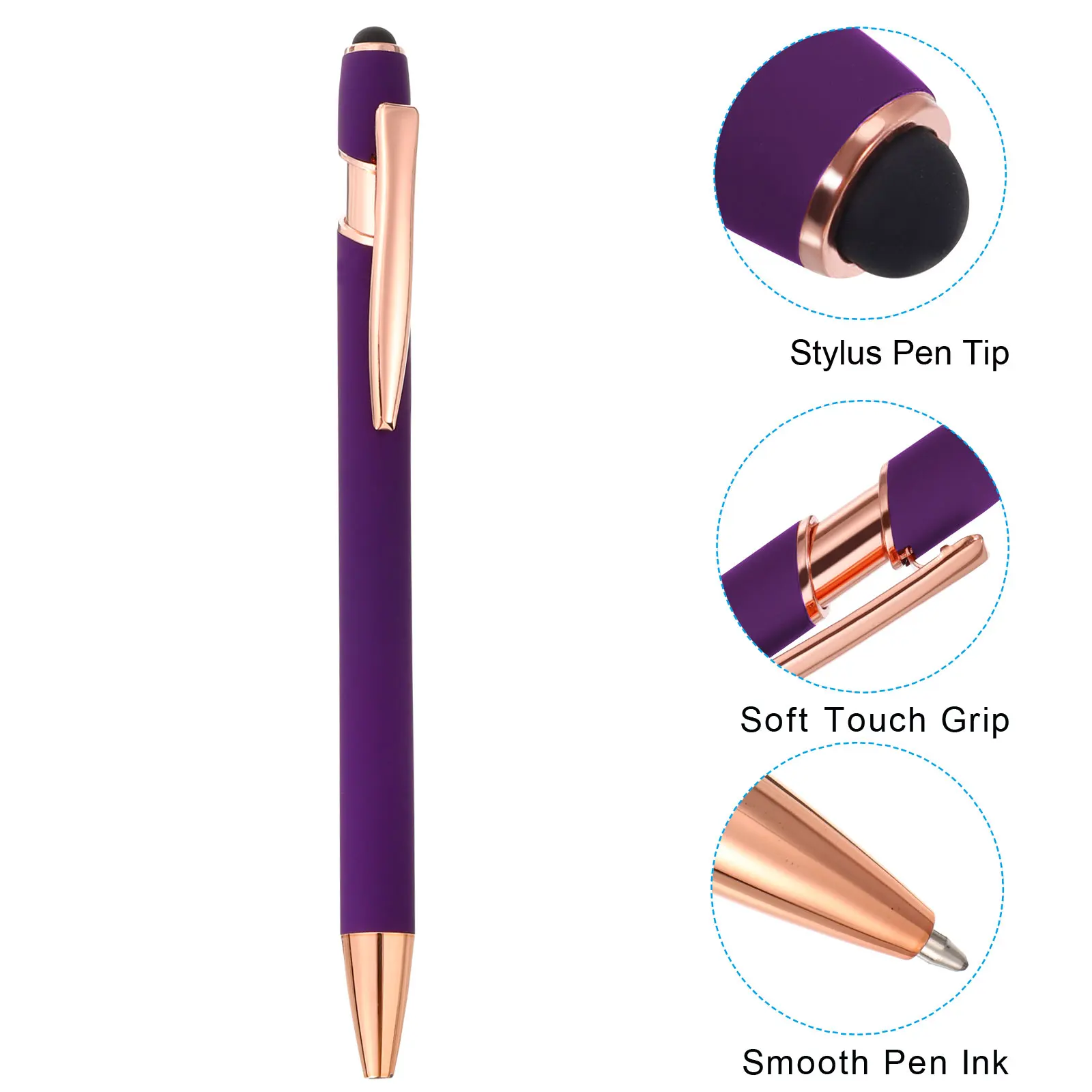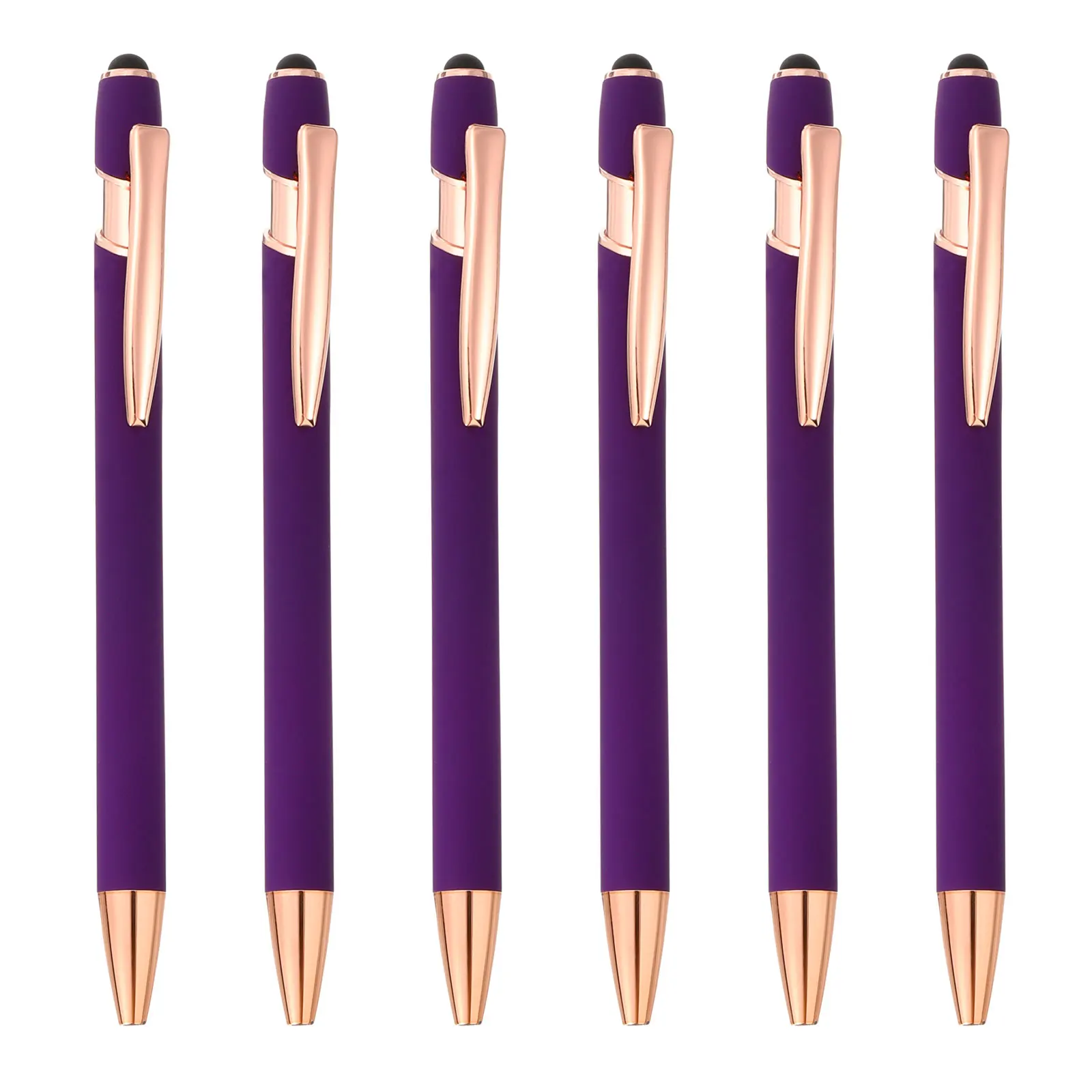 6Pcs Ballpoint Pen with Stylus Tip 2 in 1 Metal Pen Black Ink 1.0mm Medium Point Stylus Pen for Touch Screens Purple
