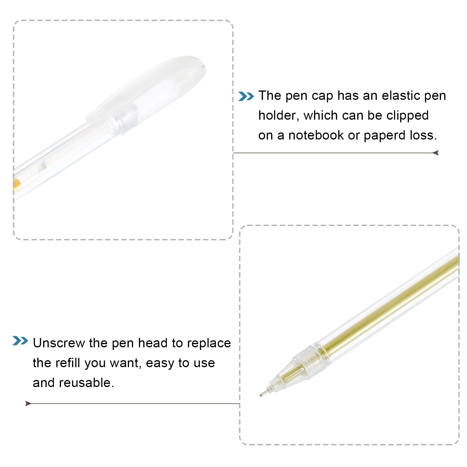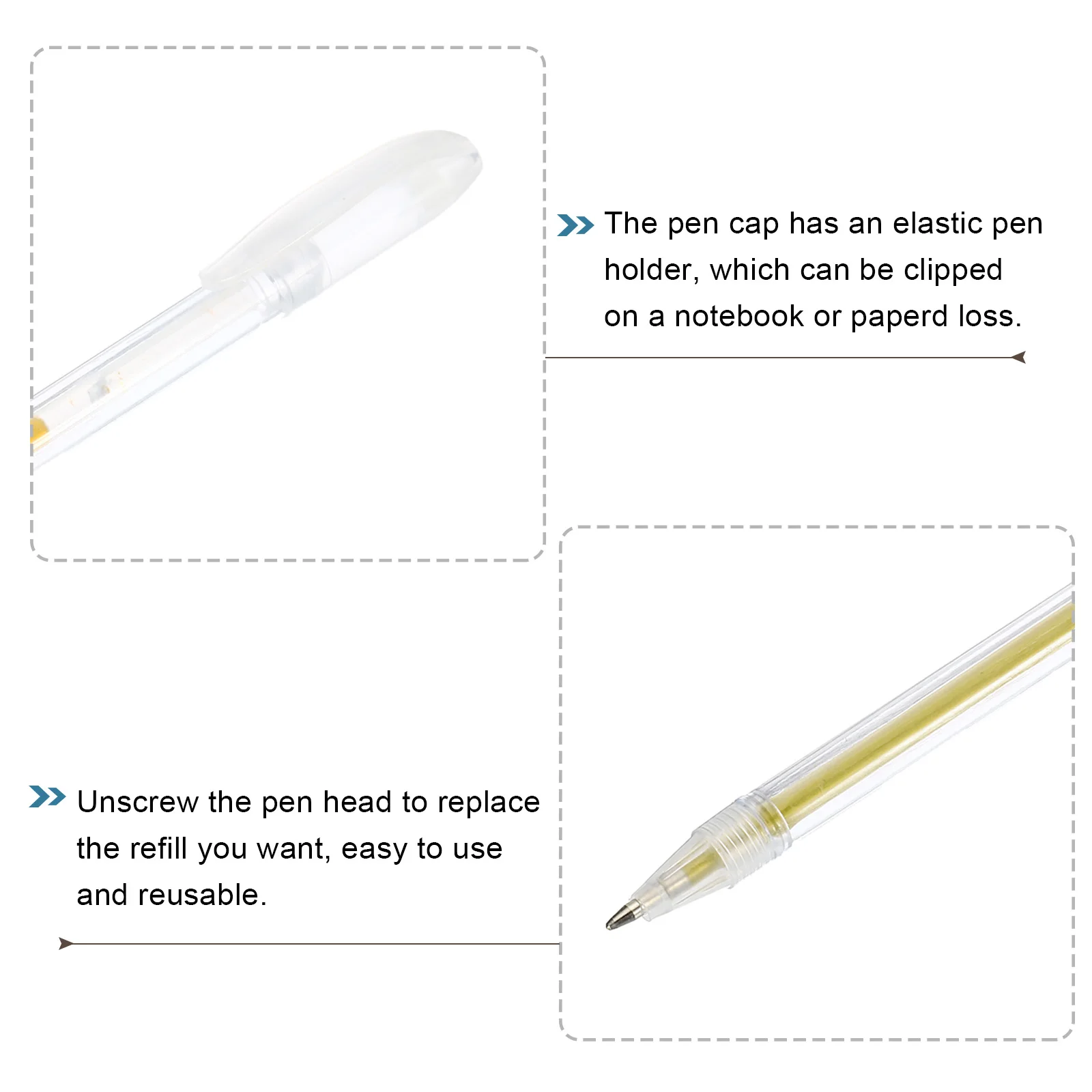 2. Glitter gel pens are colorful, vivid, and metallic. The glittery iridescent ink adds a dazzling, dual-color sparkle effect, to make your writing and artwork stand out.