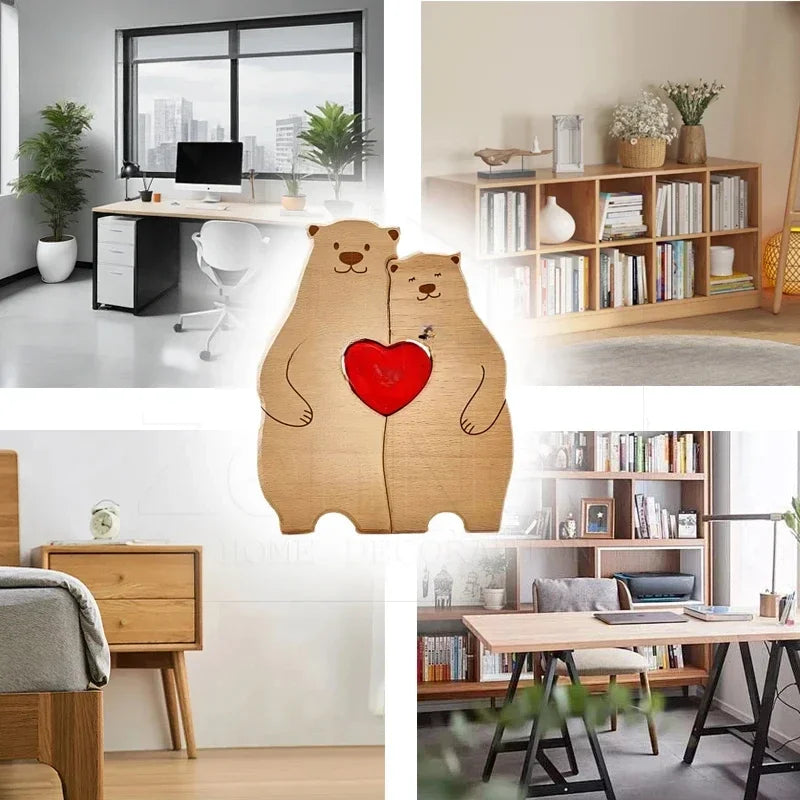Bear Home Wooden Puzzle Decor Heart Warmer Birthday Gift Art Puzzle Name Home Decor Thanksgiving Gift