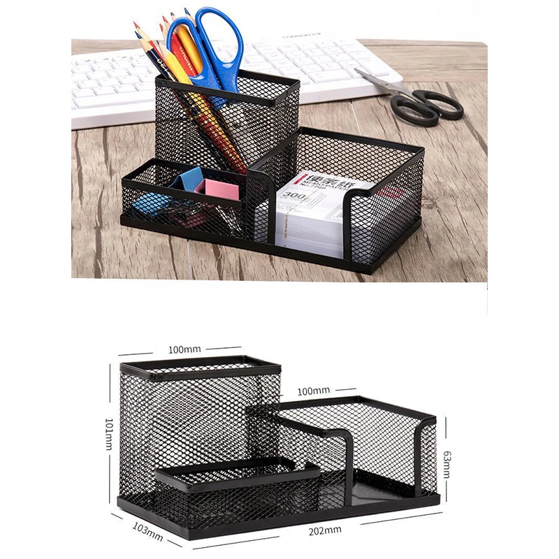 Desk Stationery Organizer Creative Metal Pen Holder Pencil File Storage Rack 3 Grid Storage Box Office Accessories
