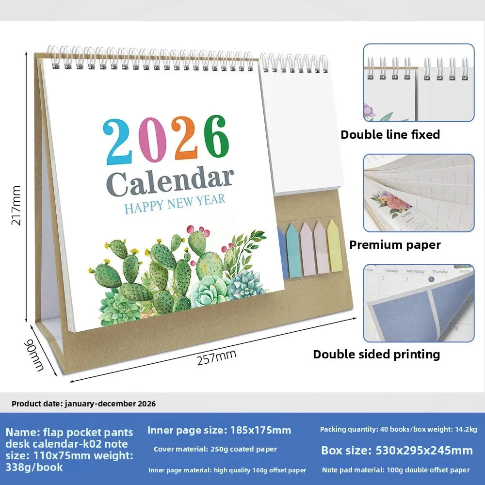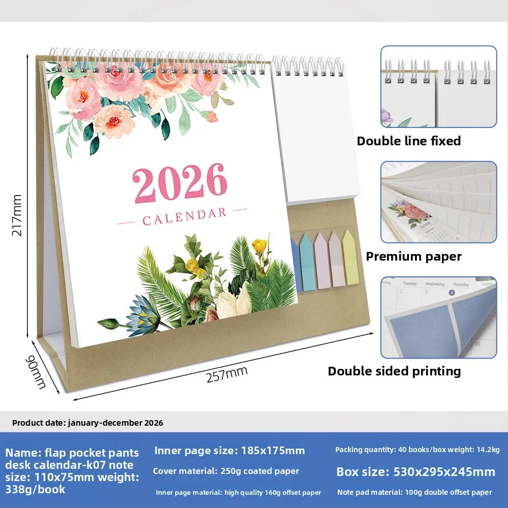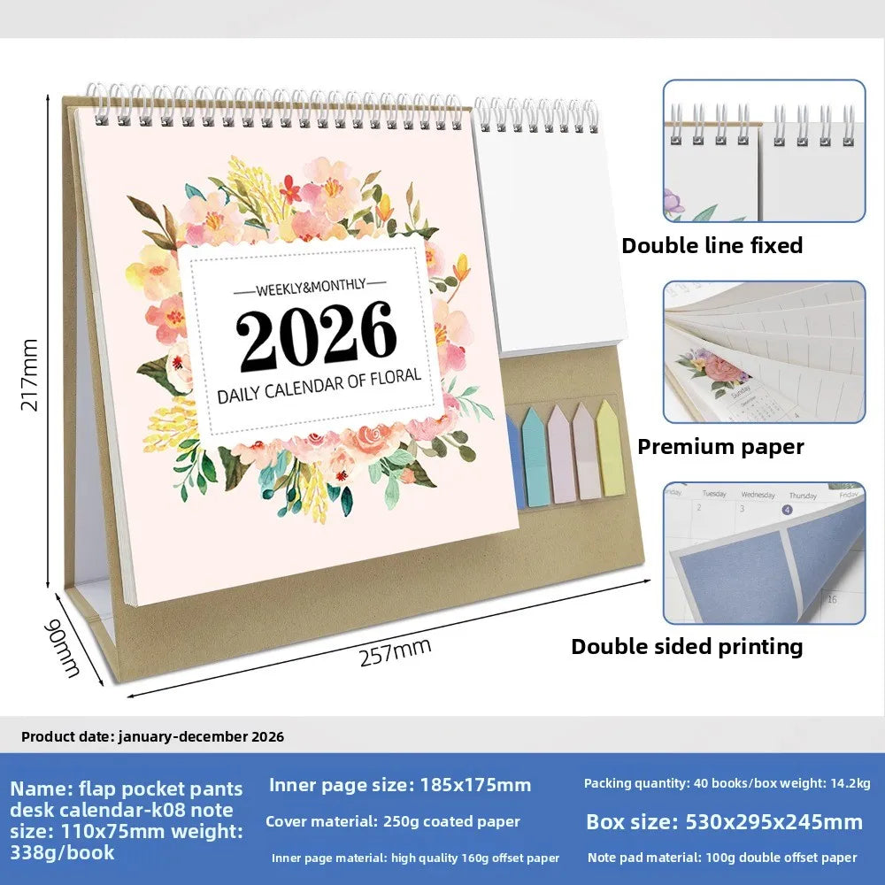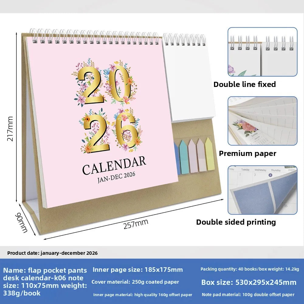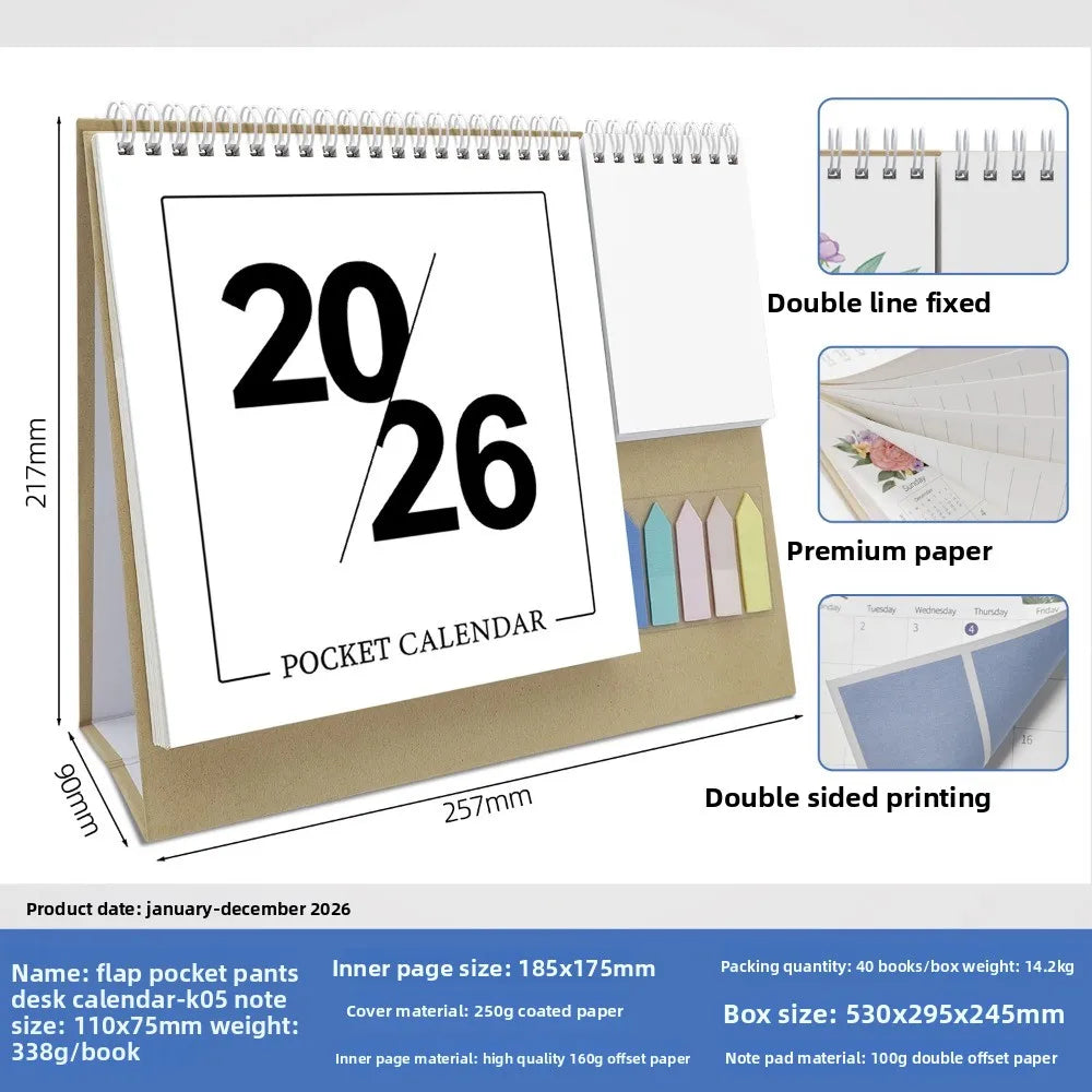 Morandi 2026 English Check-in Creative Multi-functional Pocket Calendar Day and Month Calendar Office Desktop Calendar