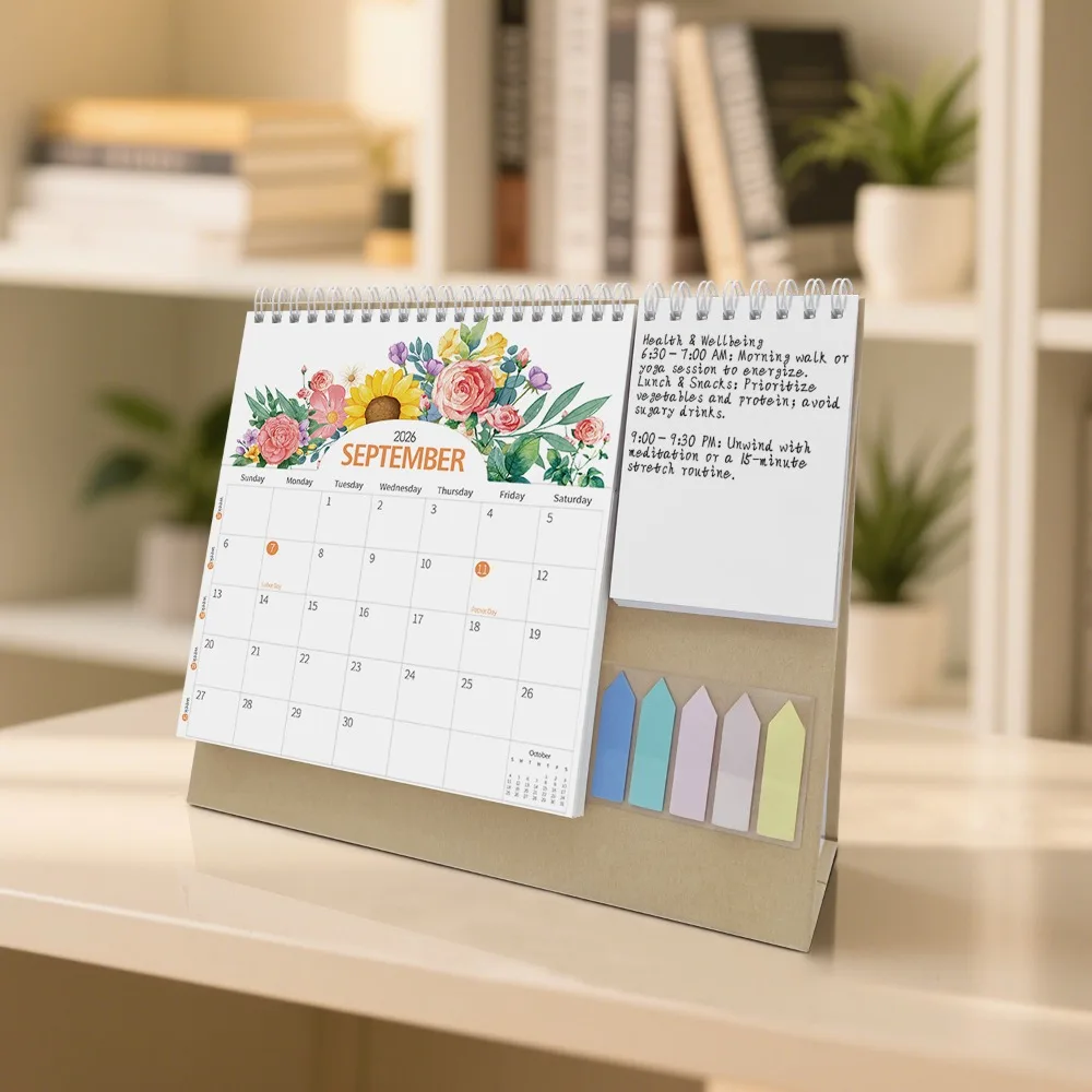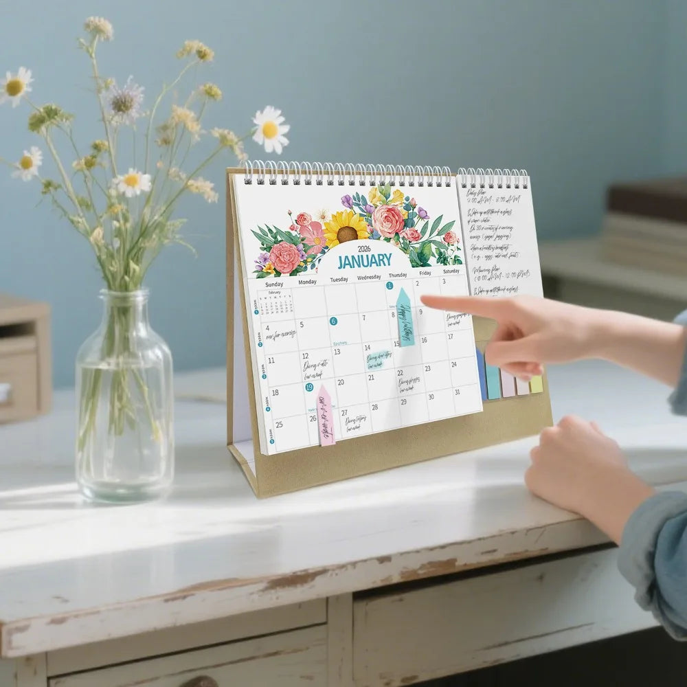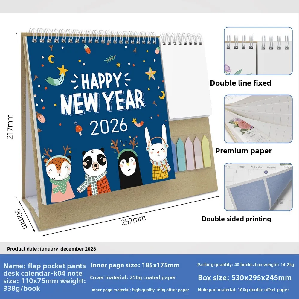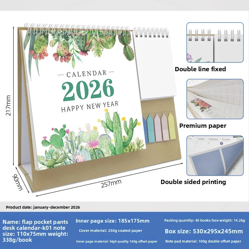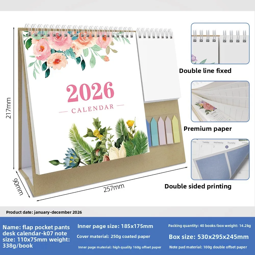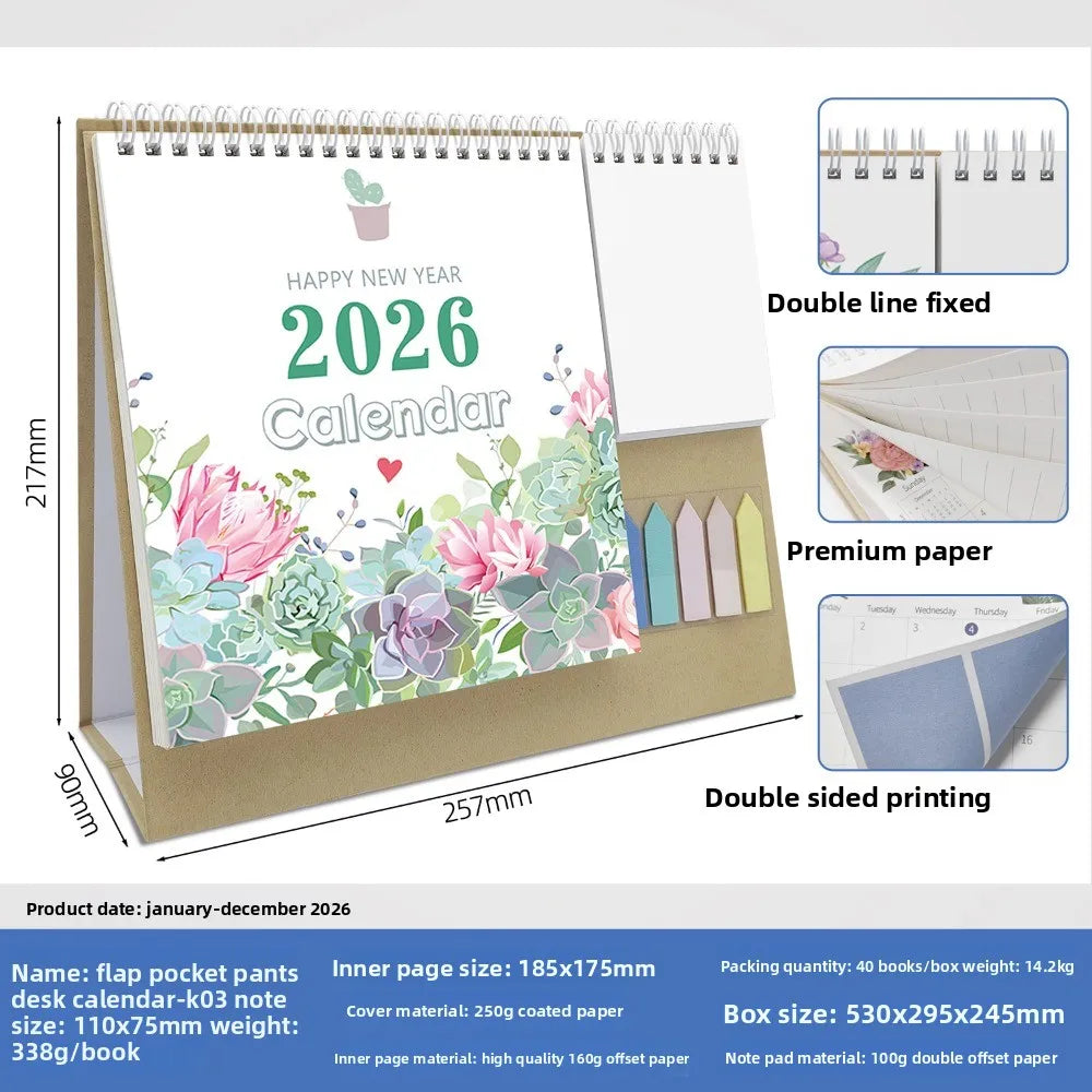Morandi 2026 English Check-in Creative Multi-functional Pocket Calendar Day and Month Calendar Office Desktop Calendar