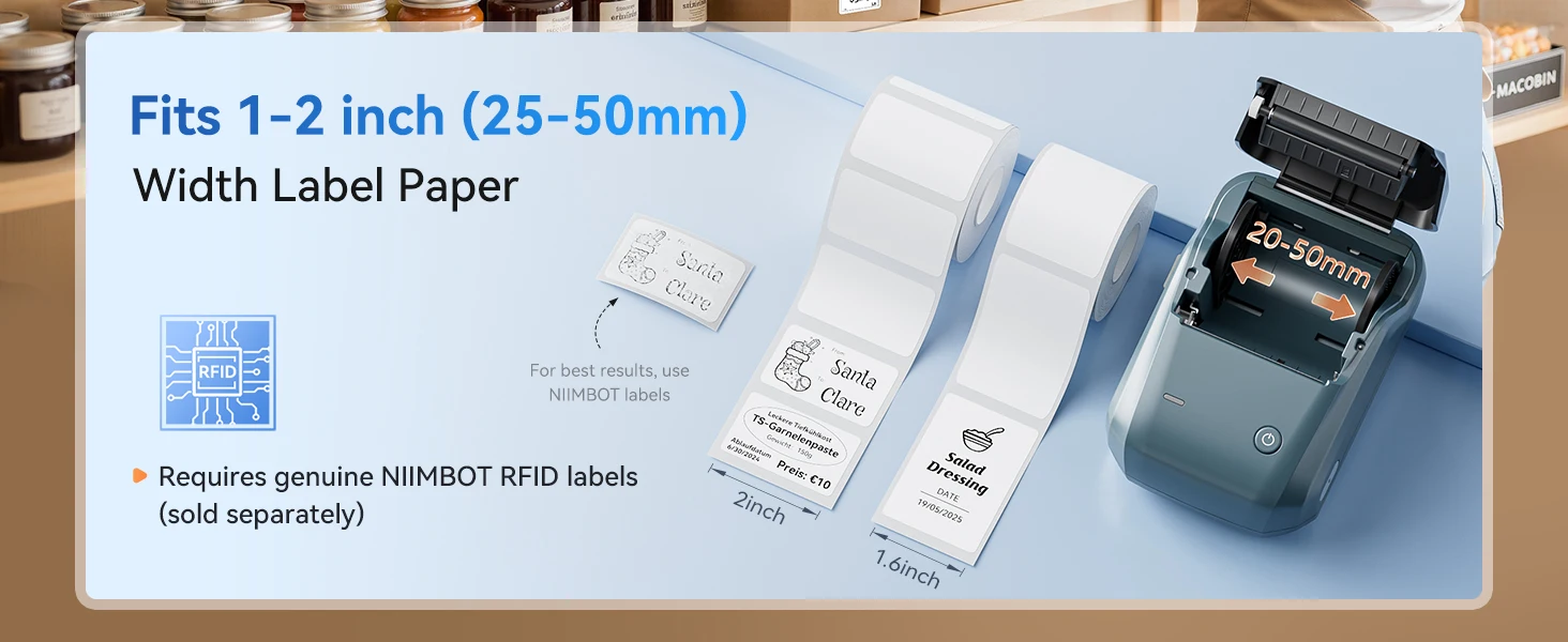 Niimbot B1 Label Maker Bluetooth Portable 2 inch Thermal Label Printer with Large Waterproof Tape for Small Business Office Home