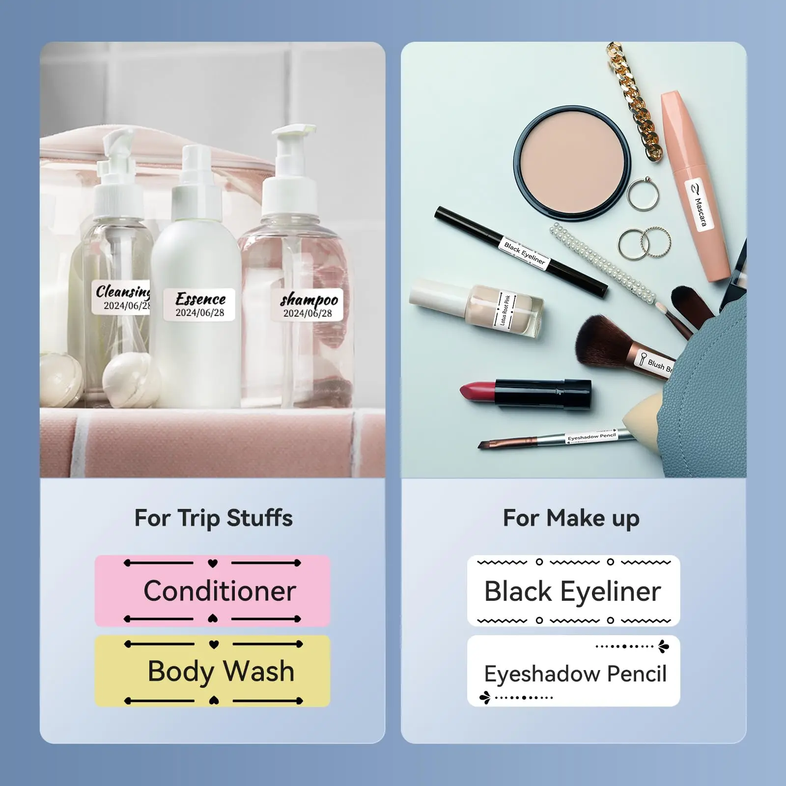 The label maker machines are used widely in organizing home supplies, classifying cosmetics items, price name jewelry tags, jar stickers, school and office files classification, storage, marking, etc. Perfect back-to-school item.
