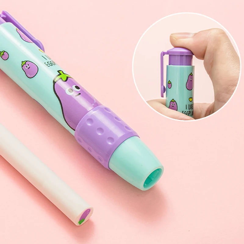 1pc Cartoon vegetables and fruits Push-pull Erasers Student Rubber Writing Drawing Eraser Creative Pencil Eraser School Supplies