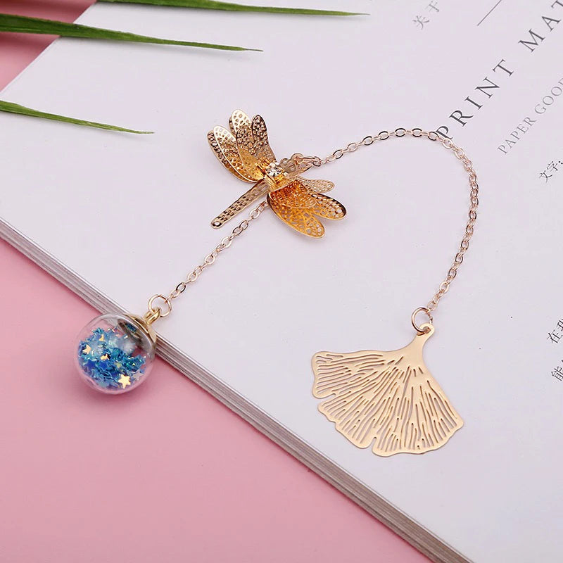 1Pc Creative Alloy Leaf Bookmarks Dragonfly Crystal Ball Student Stationery Book Page Holder Reading Book Paper Clip Readers