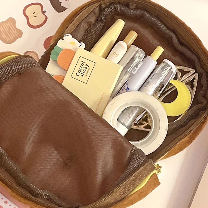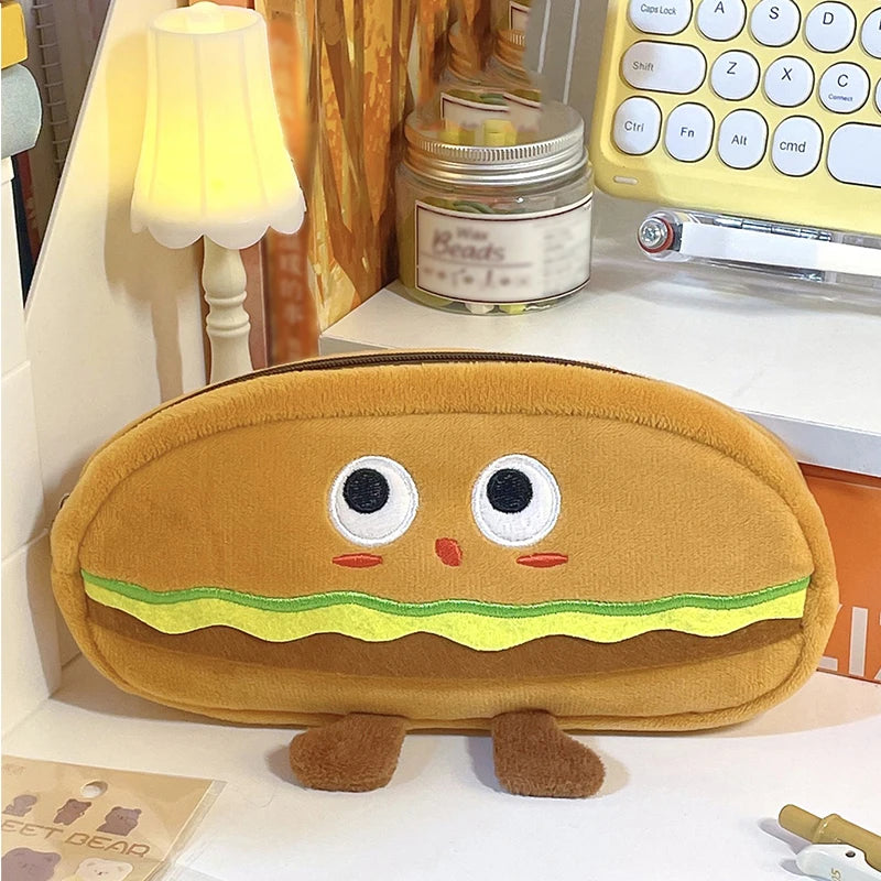 1pc Cute Hamburger Bread Toast Plush Pencil Pouch Large Capacity Kawaii Stationery Items Girls Kids back to school Gift