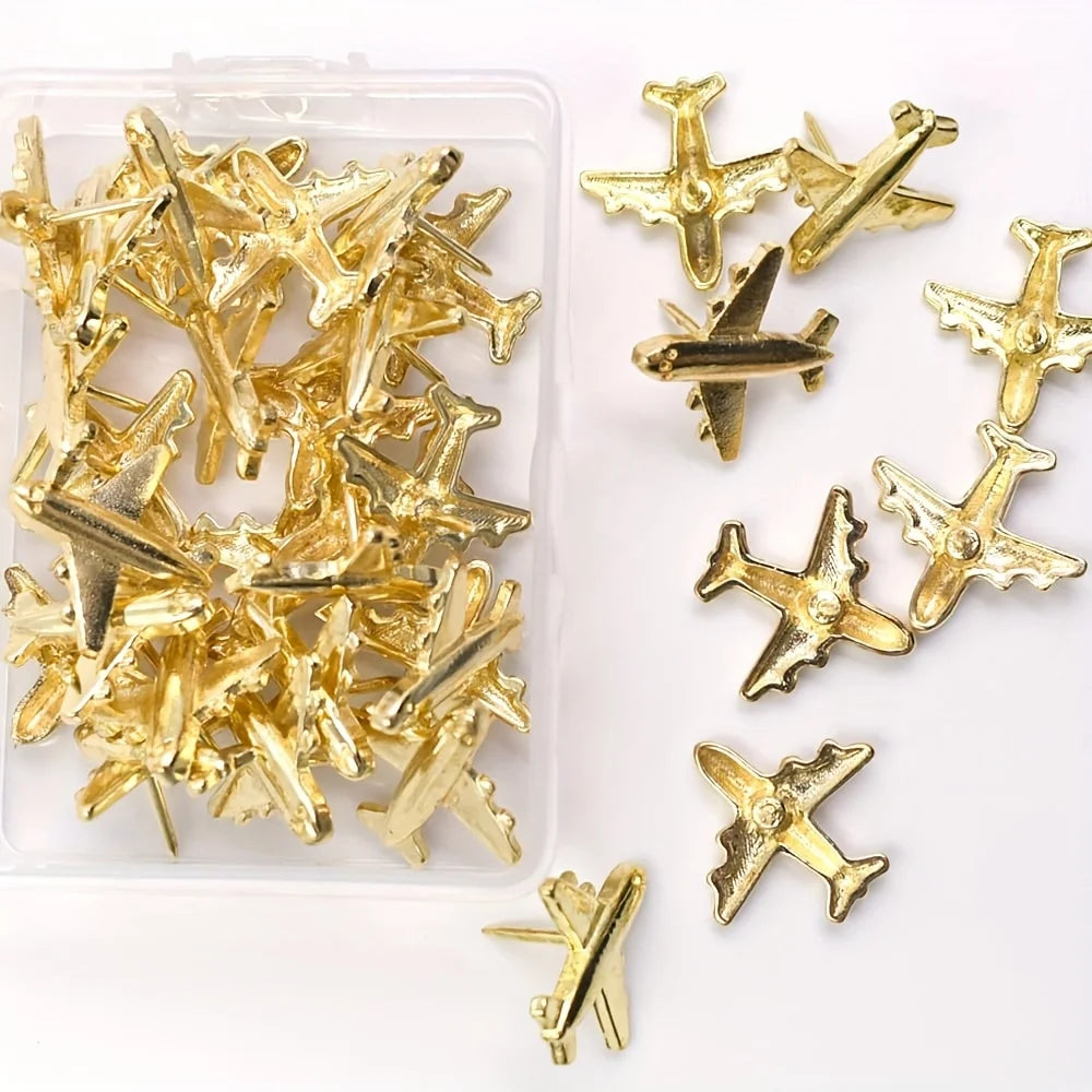 1pc Golden Creative Airplane Thumbtacks - Suitable for office cork photo walls, cork board thumbtacks, bulletin boards