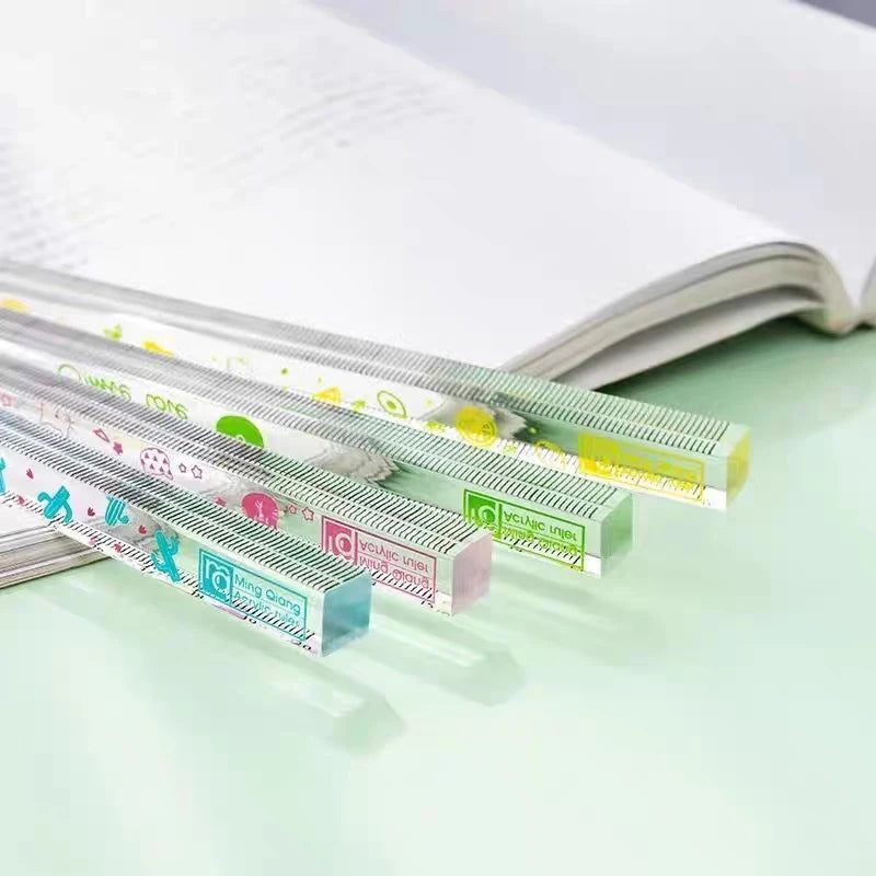 1Pc Kawaii Acrylic Four Sided Ruler Straightedge High Appearance Measuring Ruler Student Protractor