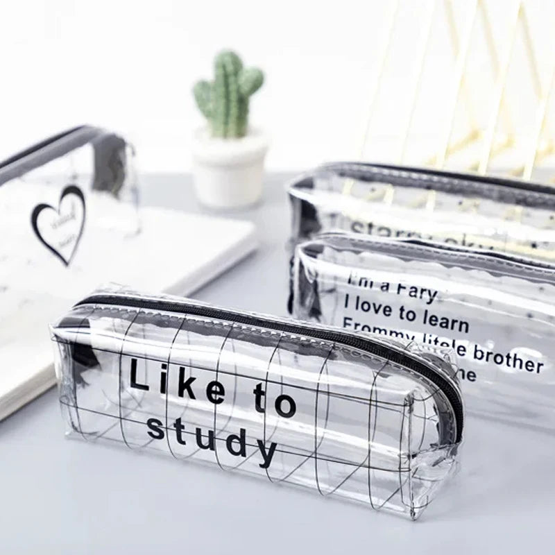 1Pc Kawaii Pencil Case Cartoon Transparent letter octagonal School Pencil Box Pencilcase School Supplies Stationery