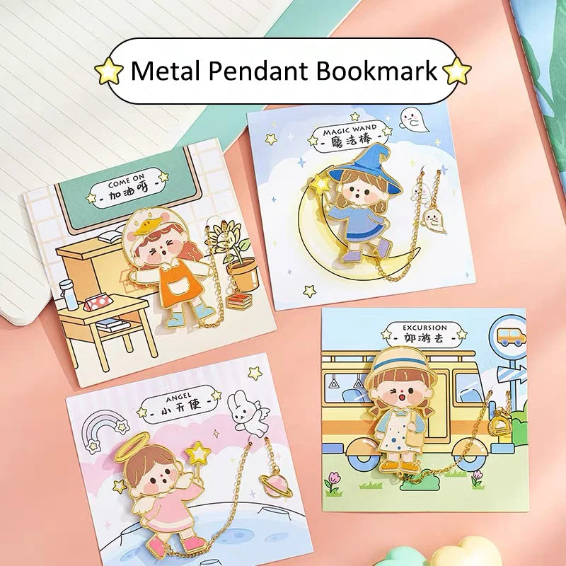 1Pc Metal Pendant Little Girl Series Bookmark Creative Commemorative Gift for Students' Graduation Gift