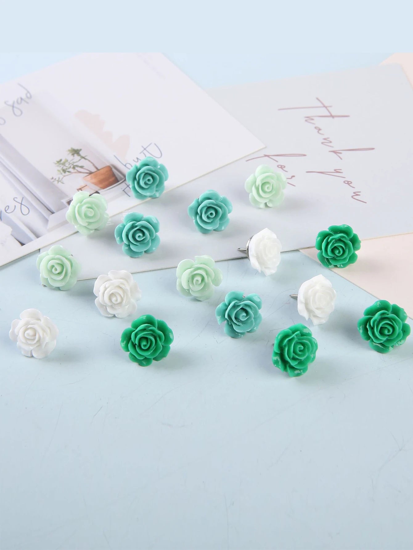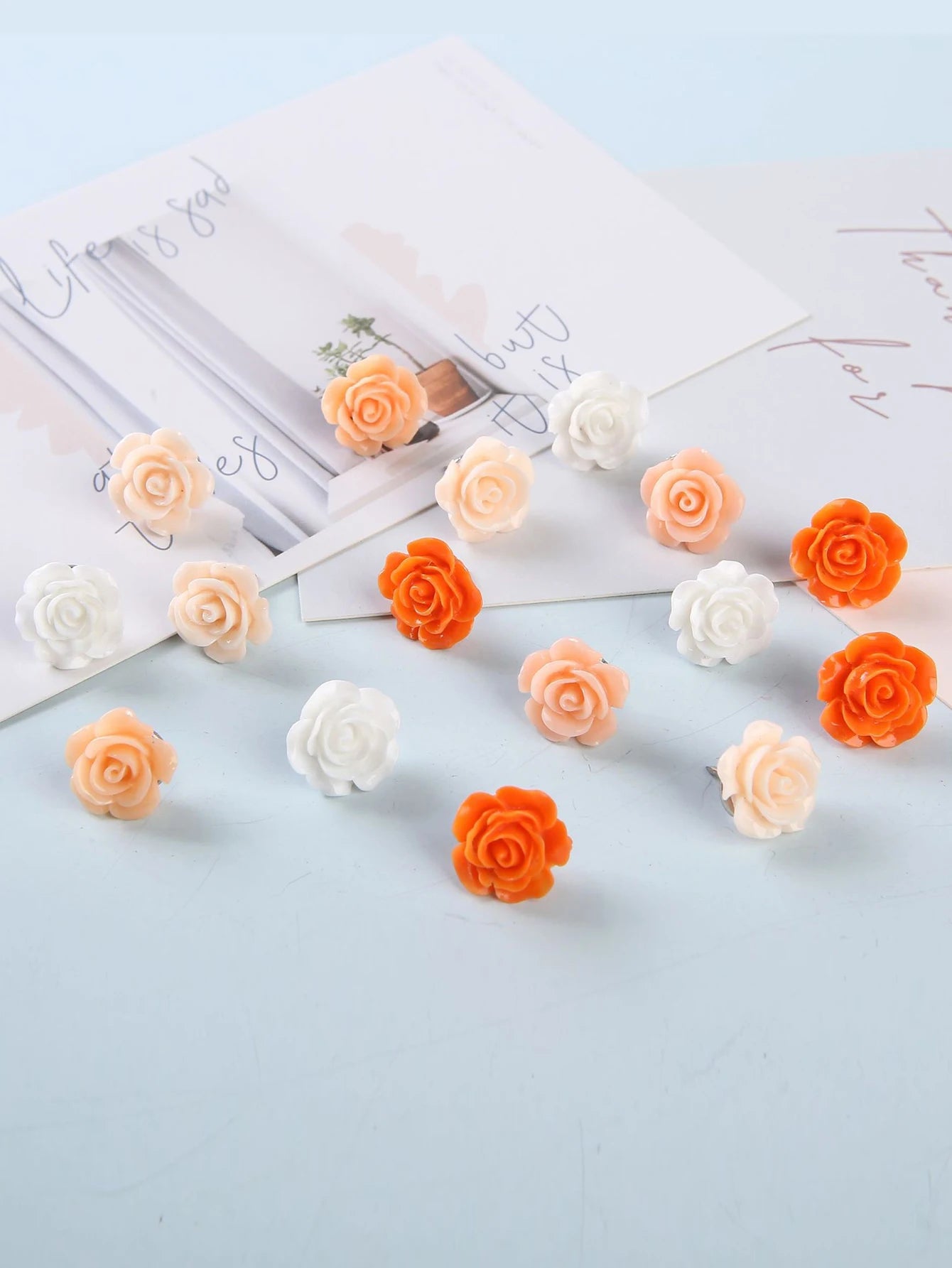 20pcs Resin Push Pins Cute Rose Flower Thumbtack New Board Drawing Photo Wall Studs Office Maps School Classroom Supplies