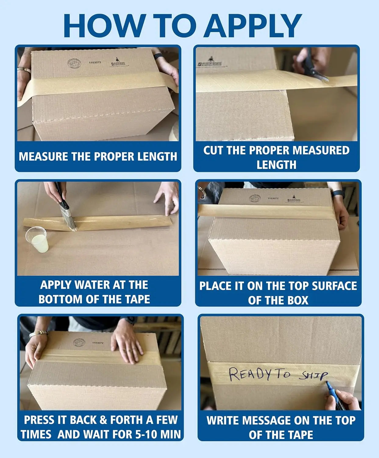 【ANY CLIMATIC CONDITIONS】 Our heavy-duty gummed tape works great in any climatic conditions, dusty or dirty environments. Strong adhesive withstands extreme heat except for the combustion point and shows high effectiveness in high humidity. Also, there is no minimum temperature that affects adhesion. The right choice for shipping, moving, packing, sealing, storing, and more
