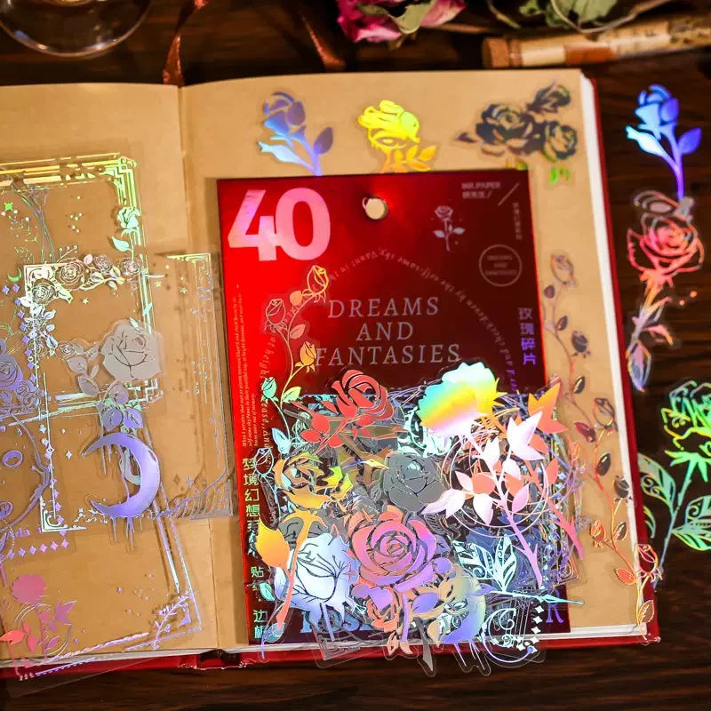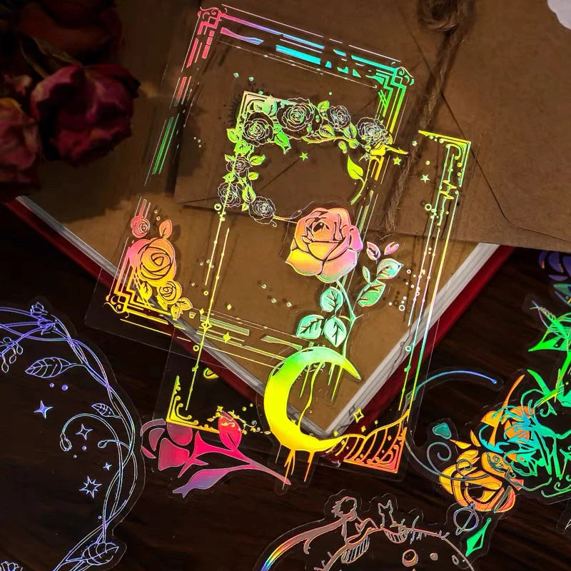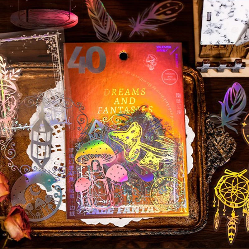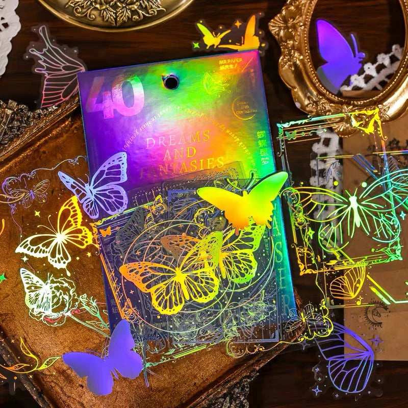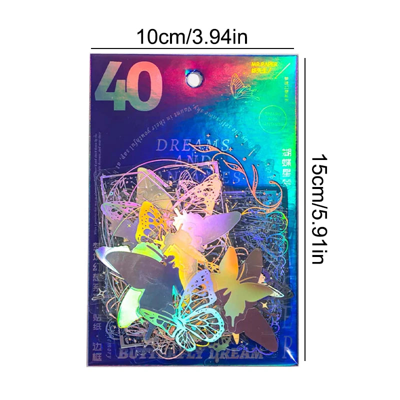 40pcs/pack PET Laser Craft Stickers Collage Junk Journal DIY Scrapbooking Adhesive Decor Waterproof Sticker Stationery