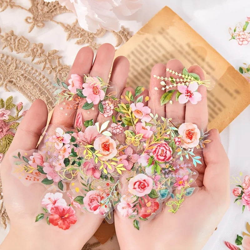 40pcs Vintage gold foil green leaf and floral stickers, suitable for diary, planner and DIY craft scrapbook supplies