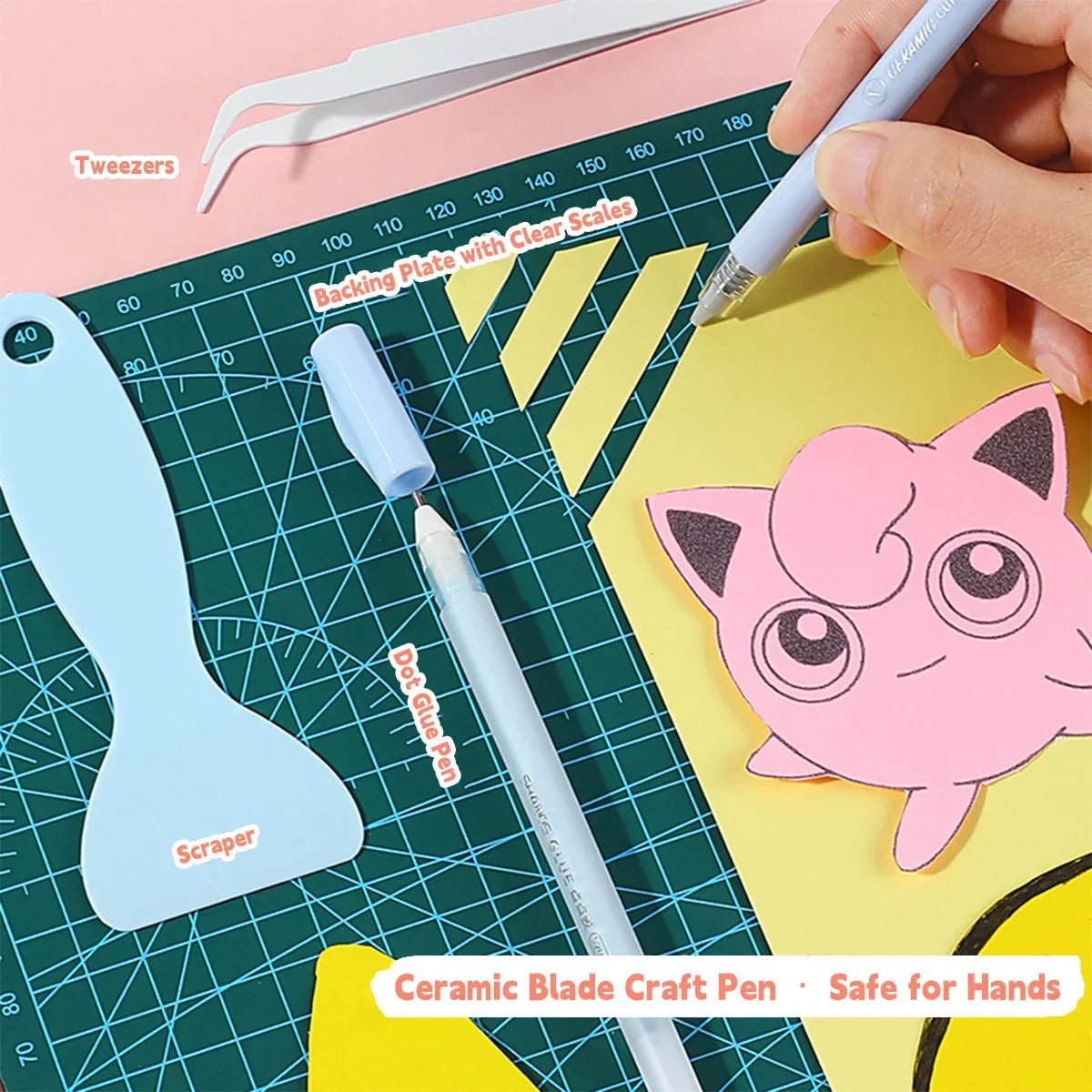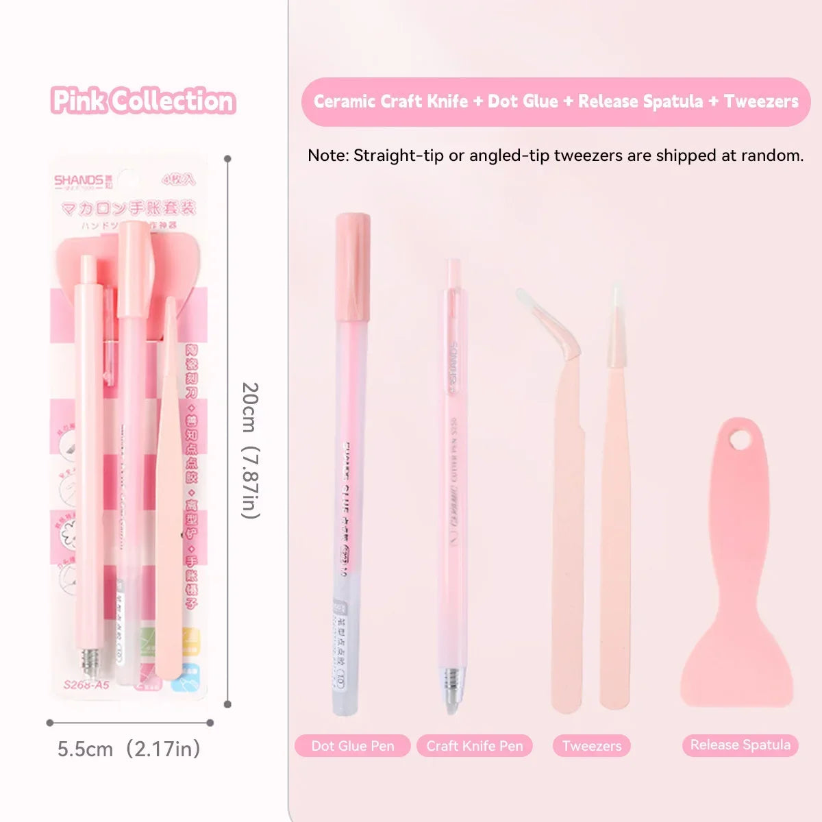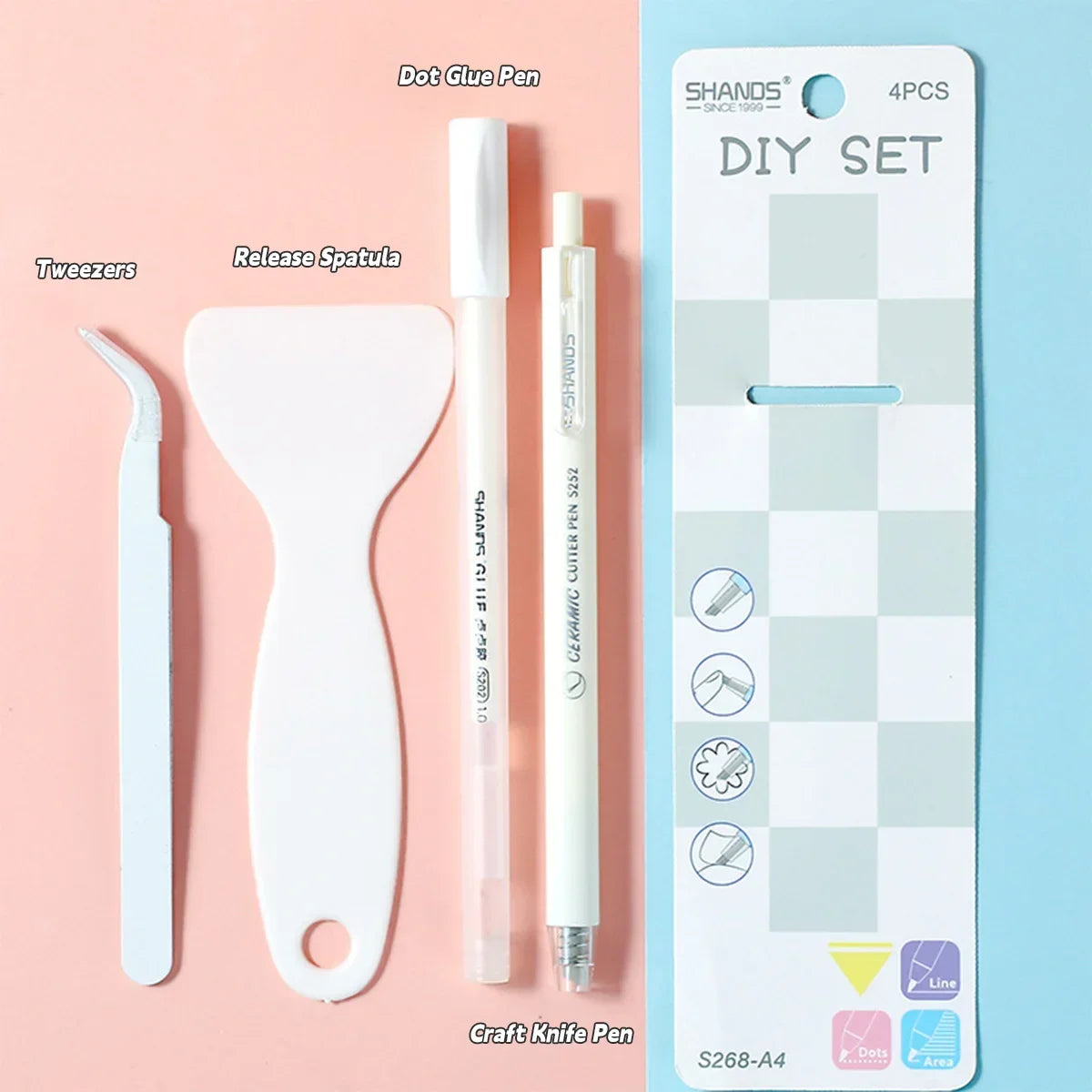 4Pcs Creative Journal Tools Kit | Cute Dot Glue Pen + Carving Knife/Shovel/Tweezers Set | Multi-Functional DIY Craft Supplies