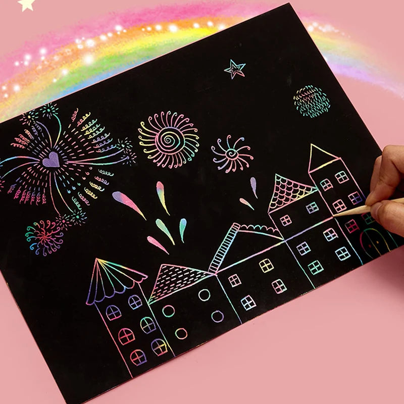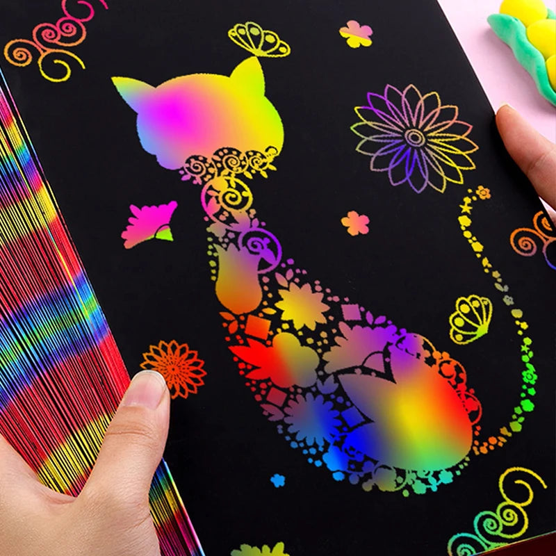 50 Pieces Rainbow Magic Scratch Off Paper Set for Kids Arts Scraping Painting Toy DIY Kids Toys Decor Paper