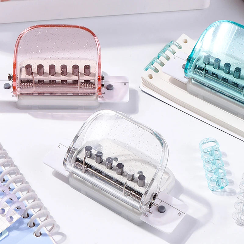 6 hole punch: Desk storage, ideal for binding notebooks and documents, quick positioning of holes, manual binding supplies