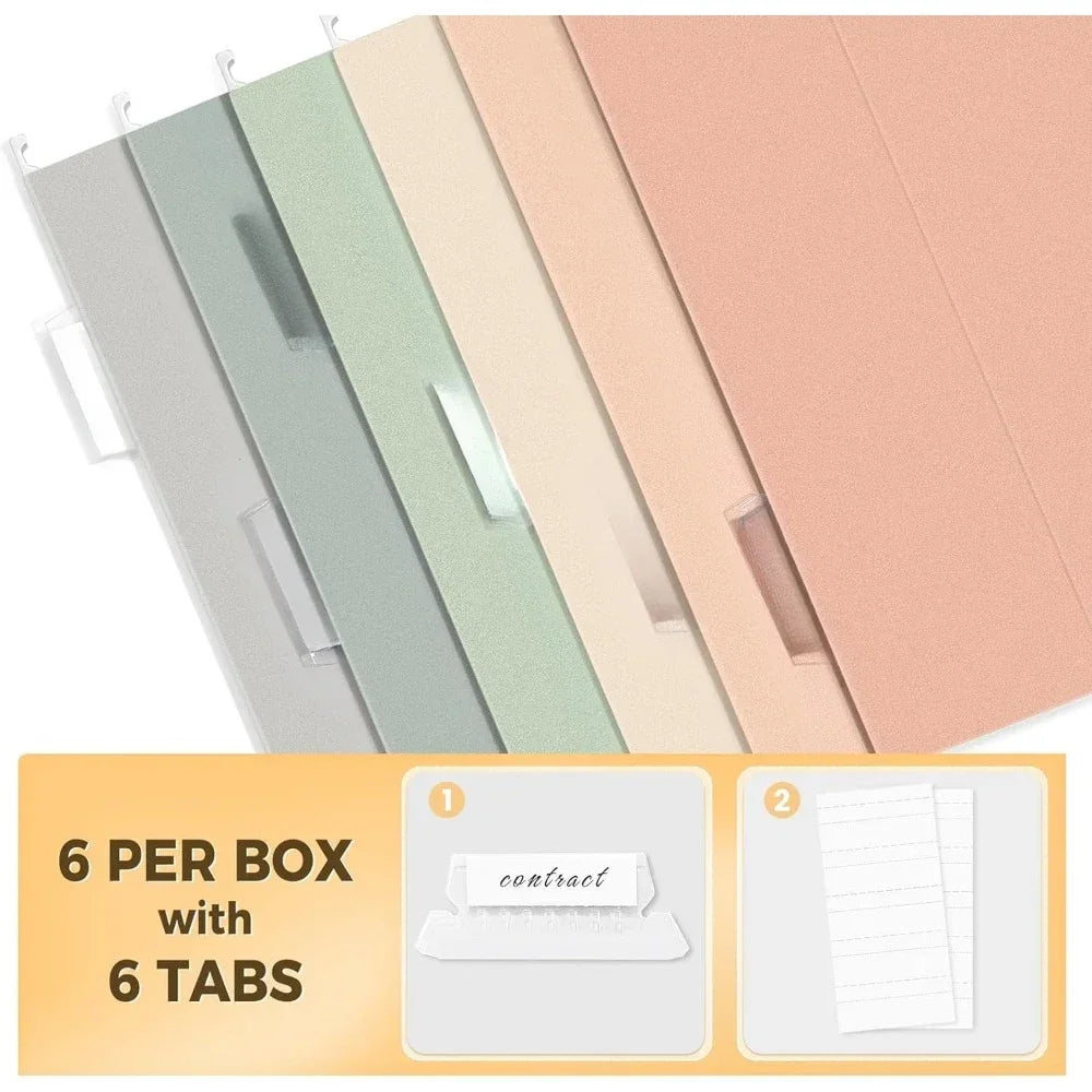 6-pack letter sized hanging folders with 1/5 cut labels, ideal for home and office organization and file sorting