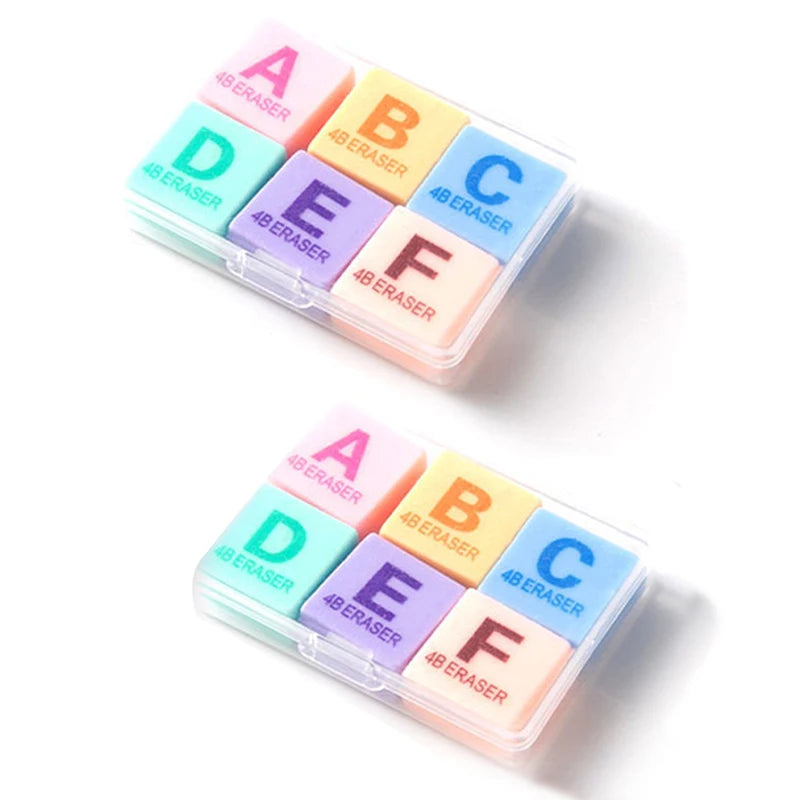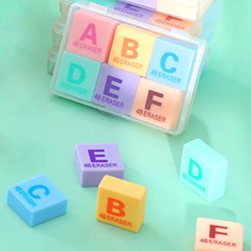 6pcs/box Pencil Eraser Creative Letter Eraser Candy Colors Soft Eraser Candy Color Pencils Eraser Cute Cartoon