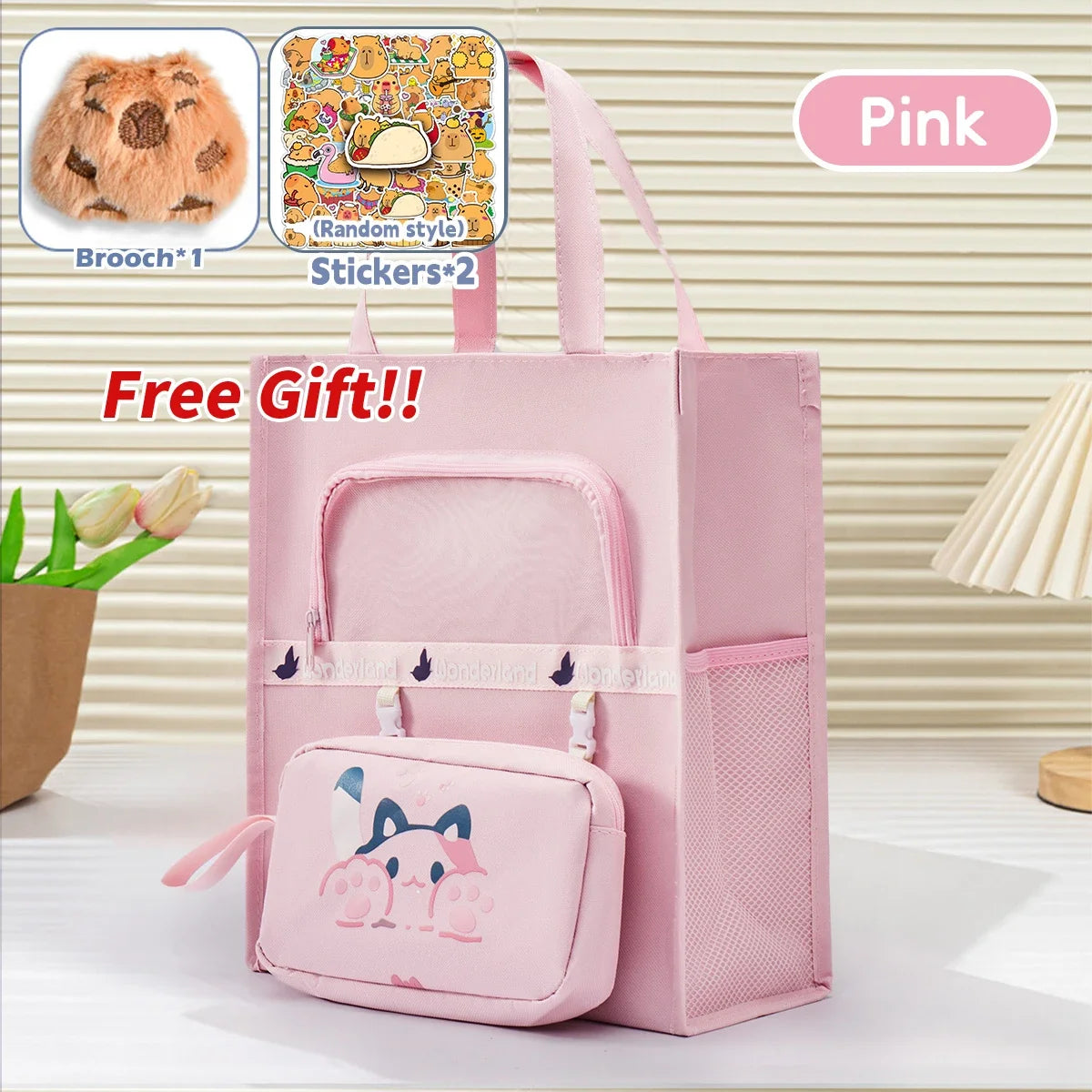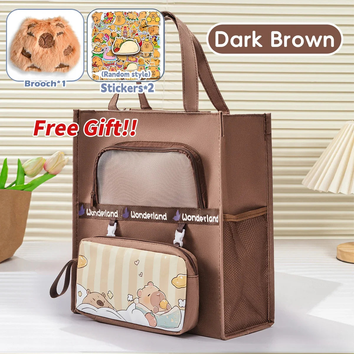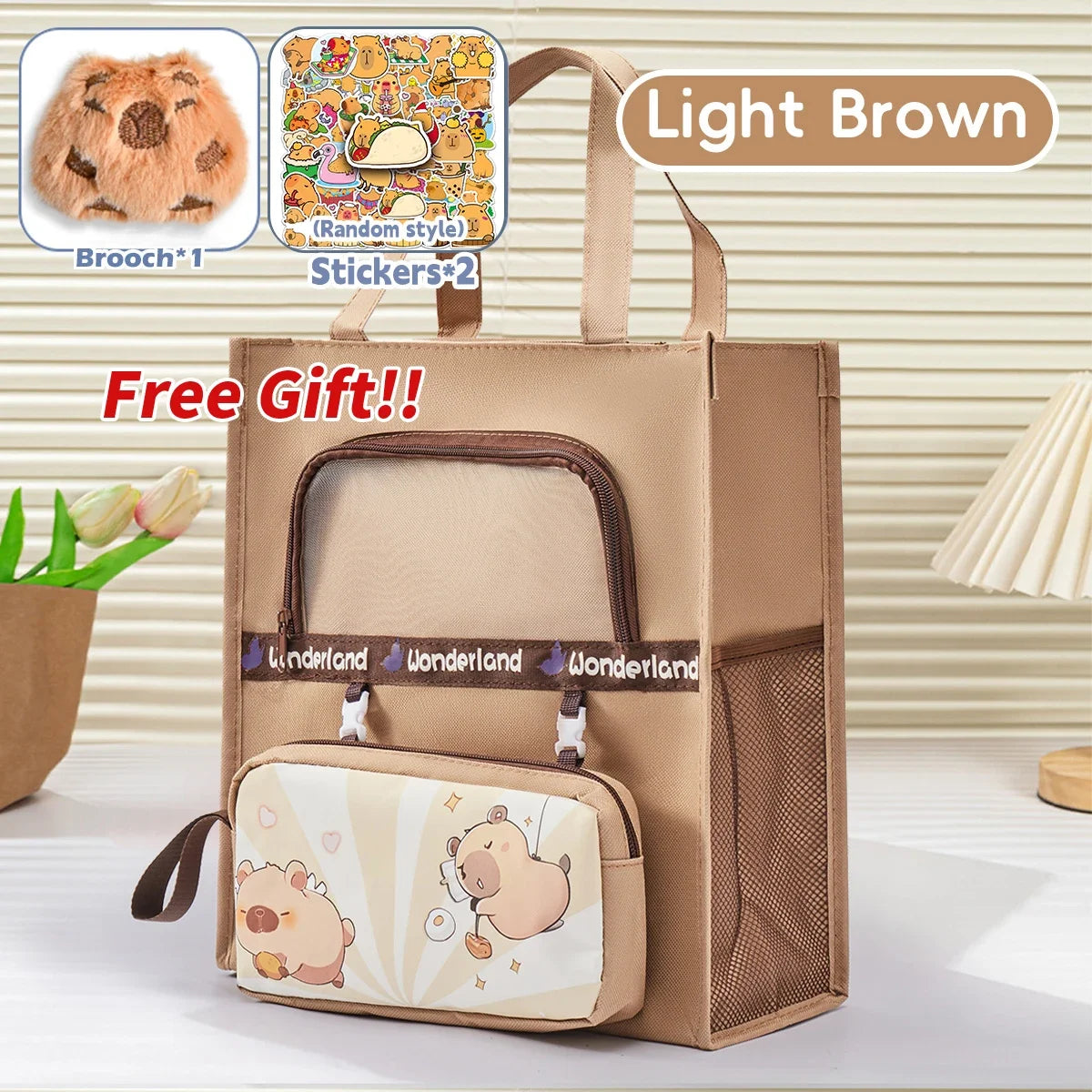 Capybara Tutoring Bag Kawaii School Student's Canvas Storage File Bag Cartoon Printing Large Capacity Tutoring Korean Stationery