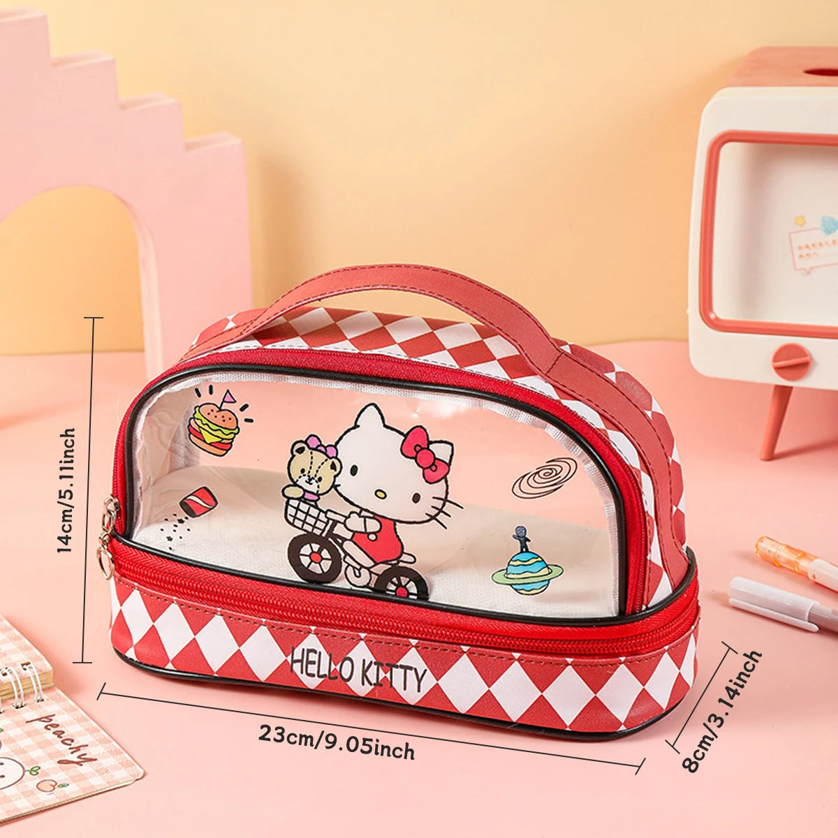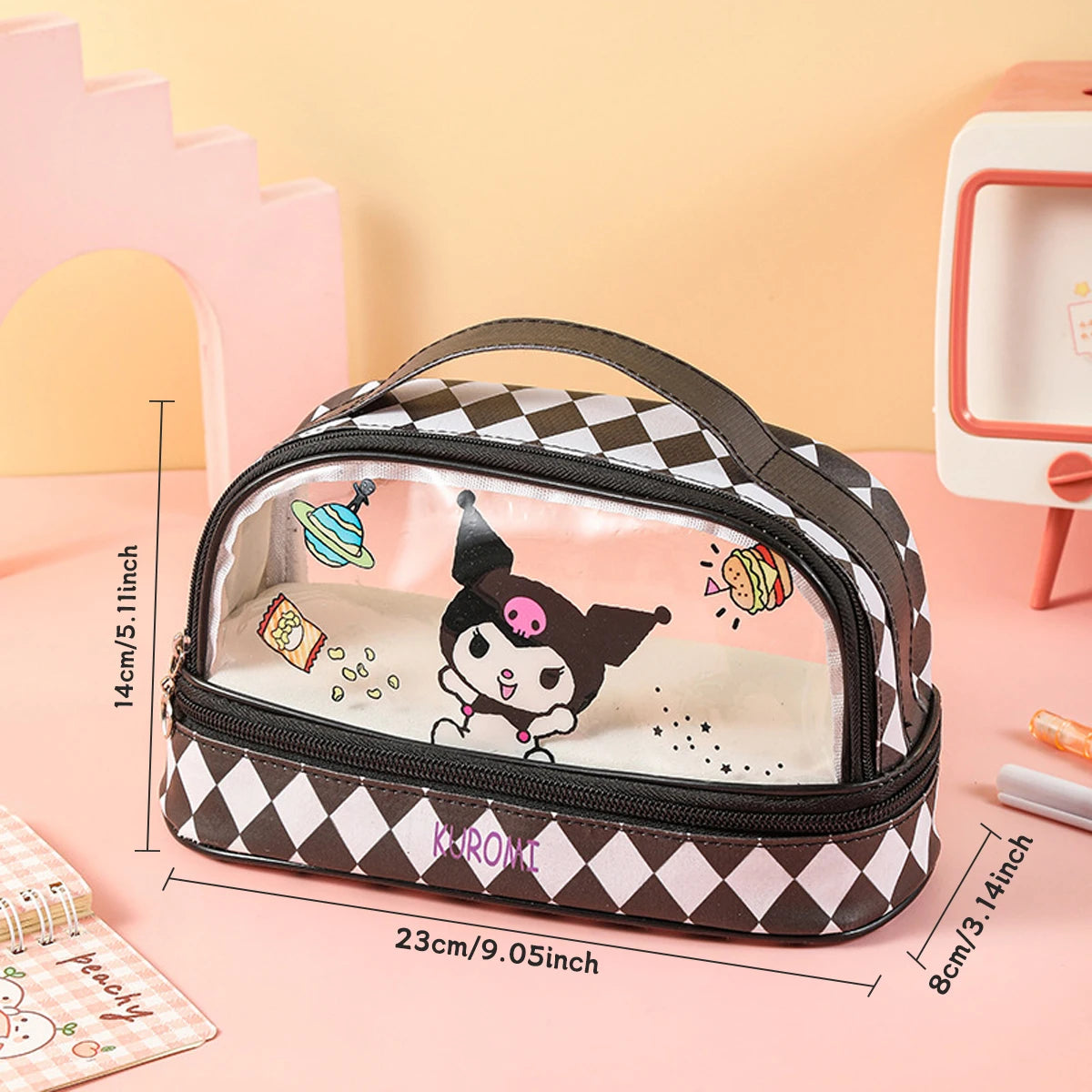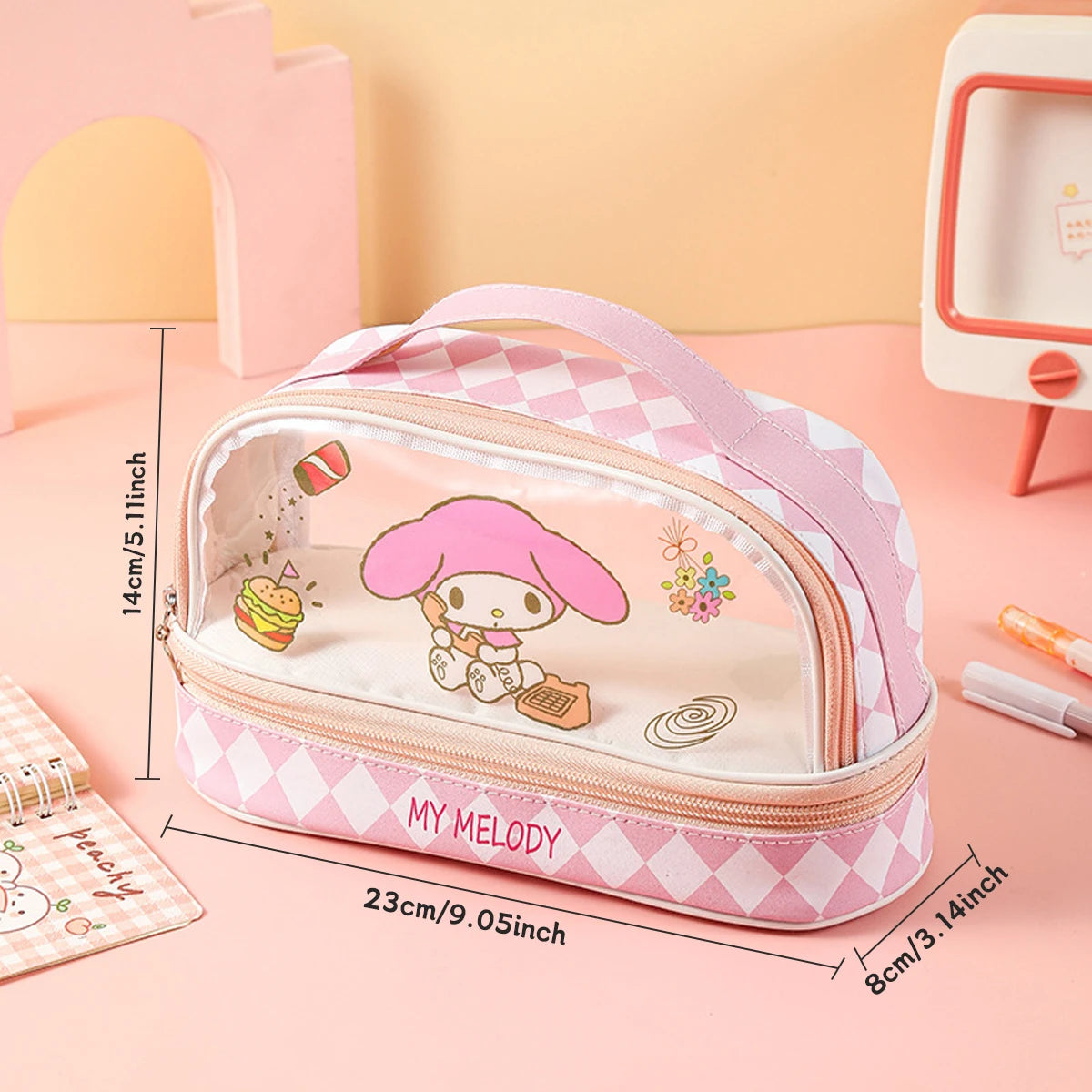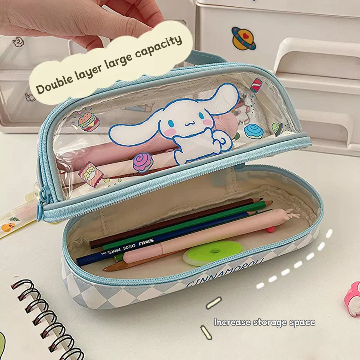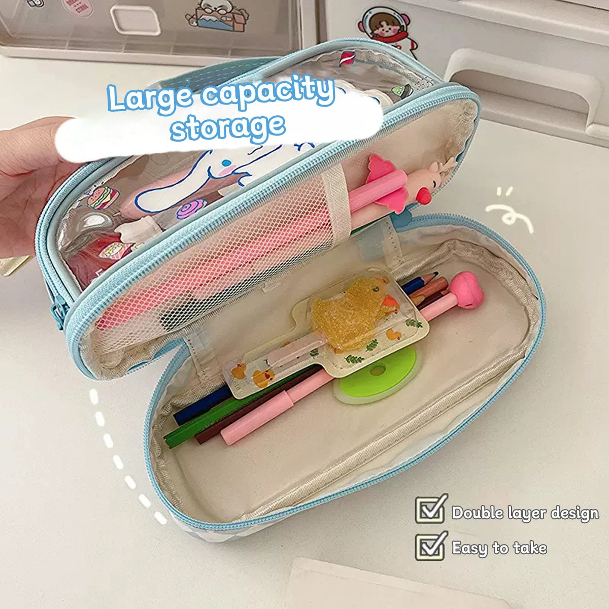 Cartoon Kawaii Large-capacity Pencil Case Student Portable Transparent Double-layer Storage Bag Cute Cosmetic Bag Stationery Box