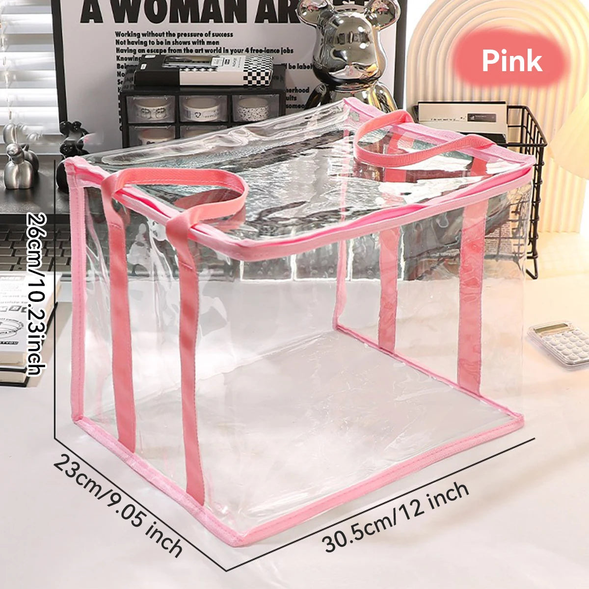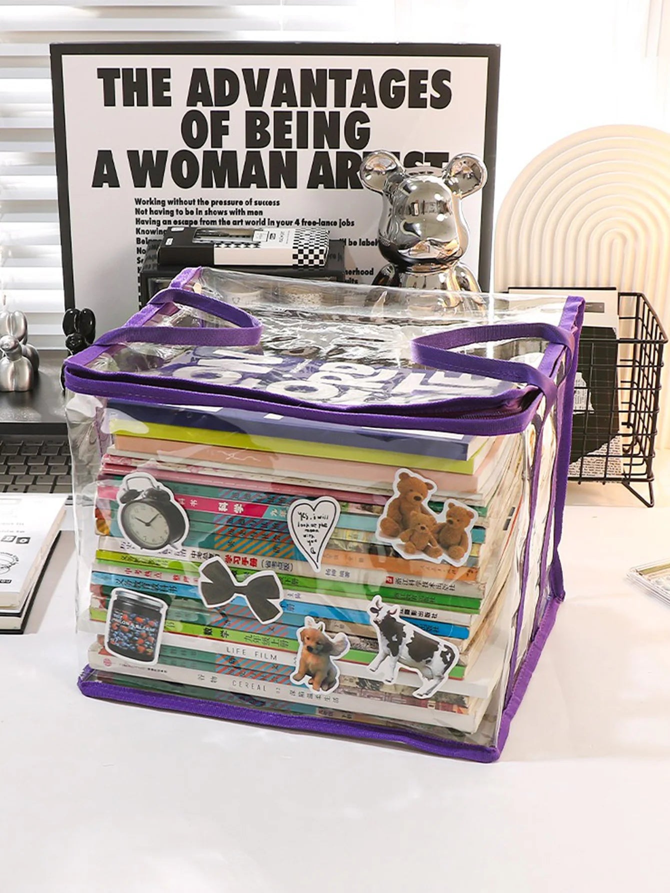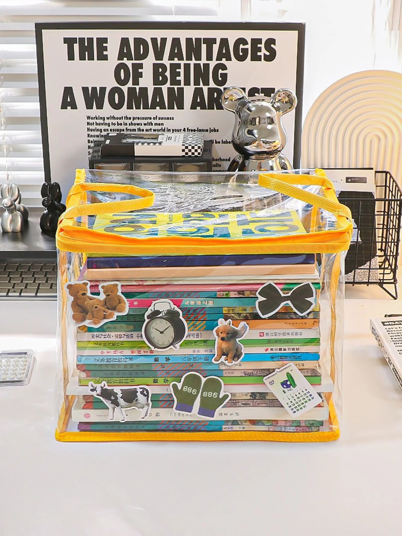 Clear PVC File Storage Box Collapsible Dustproof Bookshelf Organizer for Students School Supplies Portable Storage Container