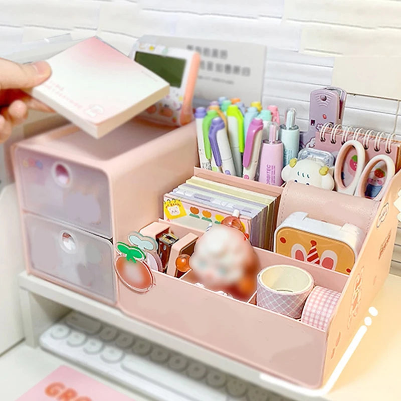 Stationery Desk Pen Holder Bunny Drawer Organizer Cute Kawaii