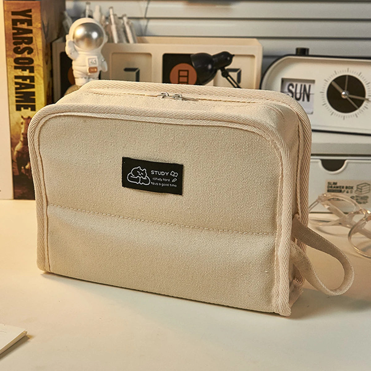 Large-capacity Canvas Pencil Case Simple Style New Popular Student Stationery Storage Box School Office Supplies