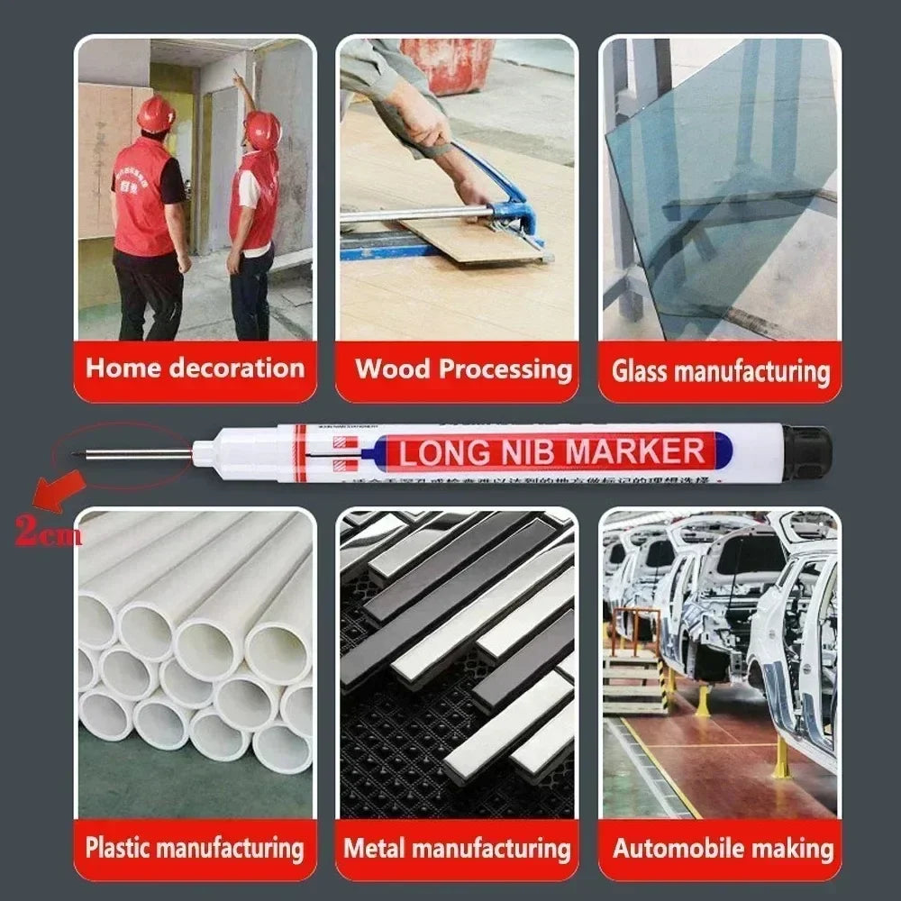 Long Tip Marking Pen 20mm High Visibility Ink, Fast-Drying Permanent with Ergonomic Grip for DIY Craft & All-Surface Woodworking