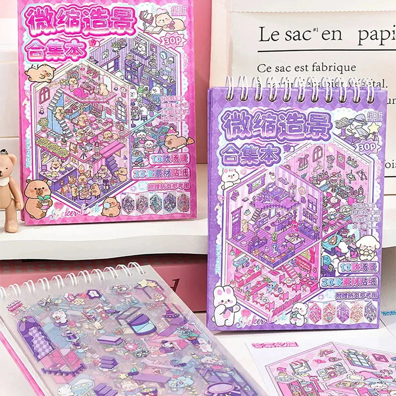 Mr. Paper 30Pcs 3d three-dimensional stacking miniature scene stickers scenery sticker book girls puzzle handmade diy stress