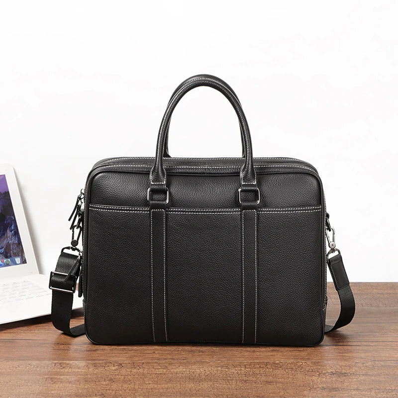 Multiple Compartment Men‘s Briefcase Genuine Leather Business Handbag Men Laptop Briefcase Leather Shoulder Bags Office Work Bag