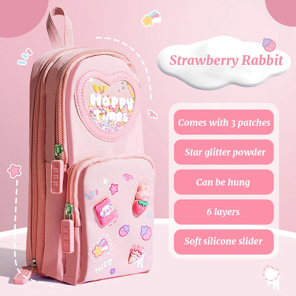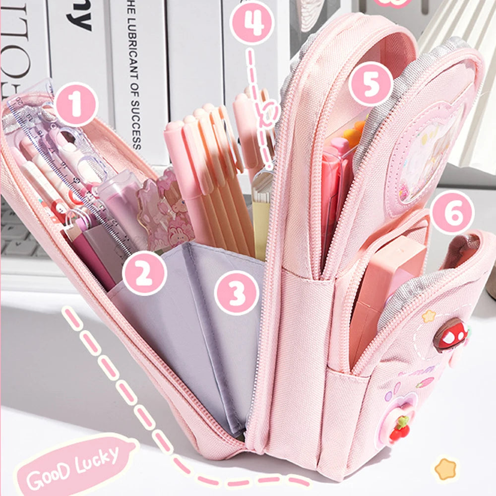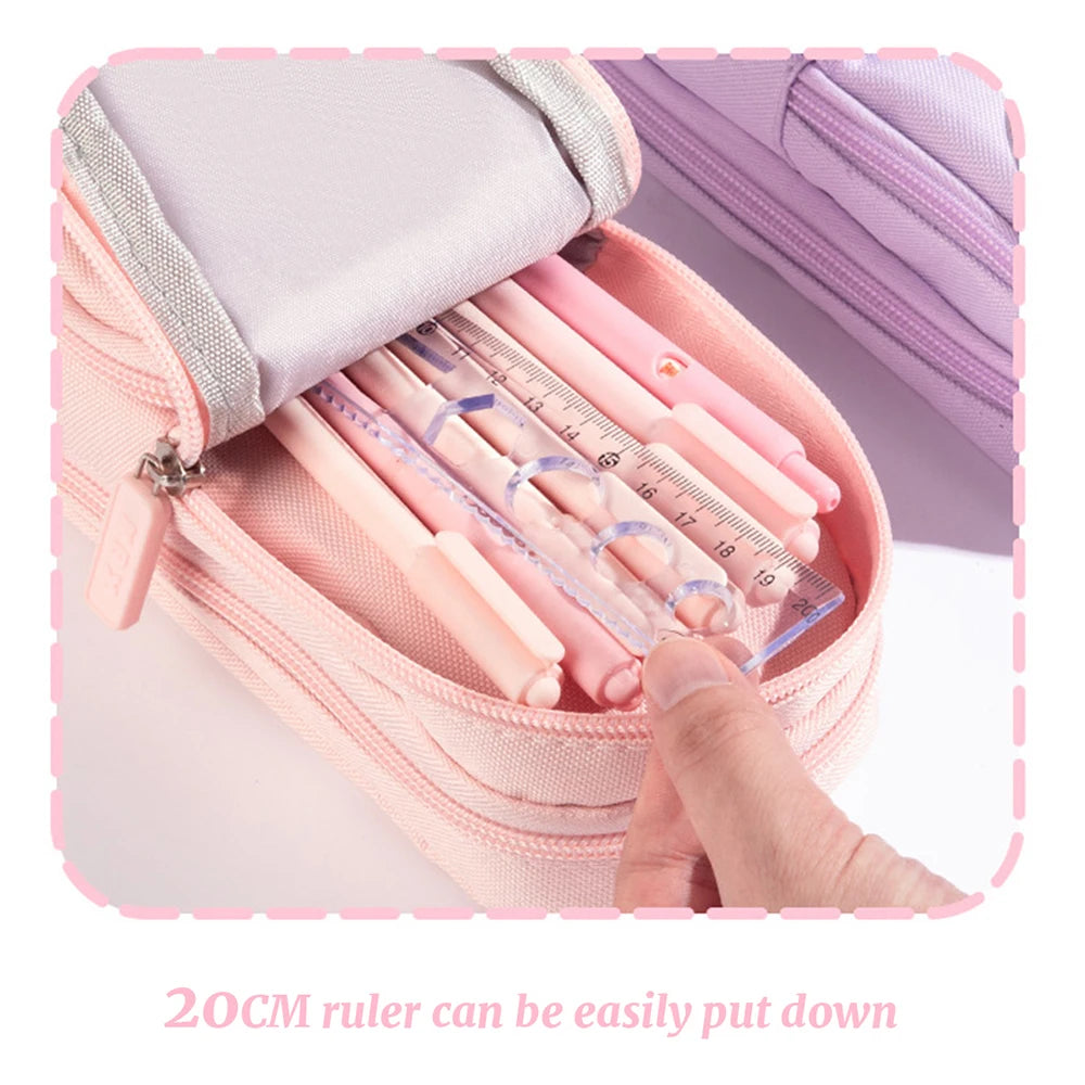 Three Layer Backpack Shape Pencil Case Large Capacity Cute Cartoon Simple for Girls School Students Stationery Supplies
