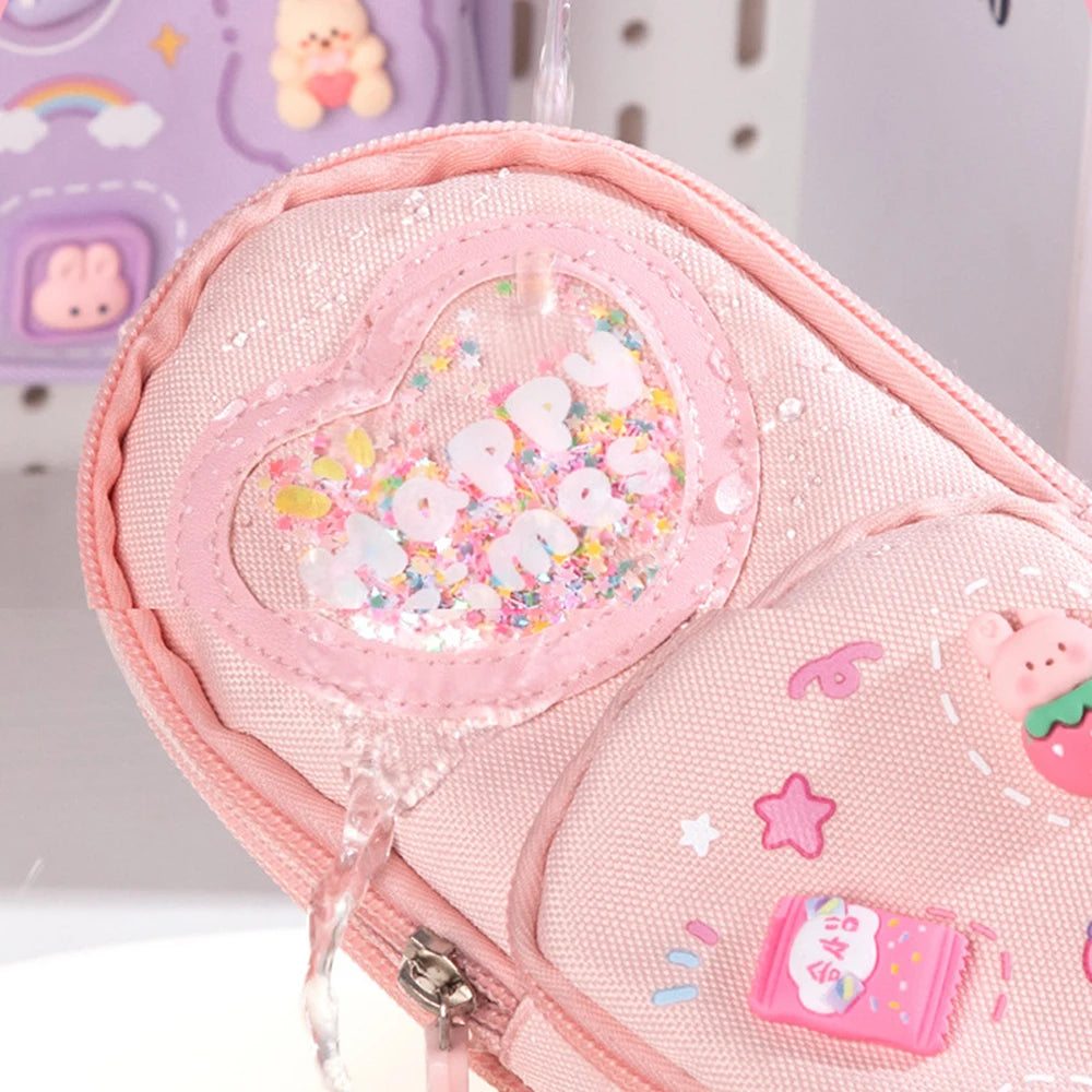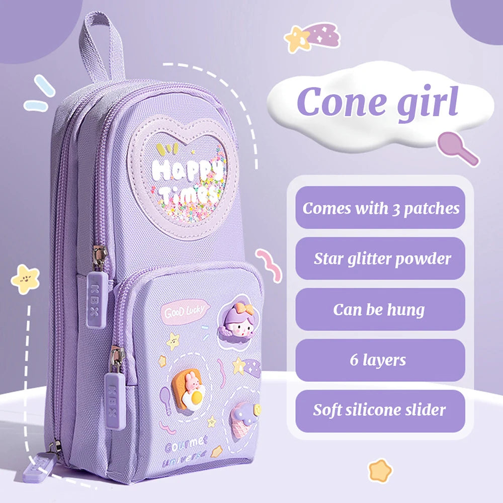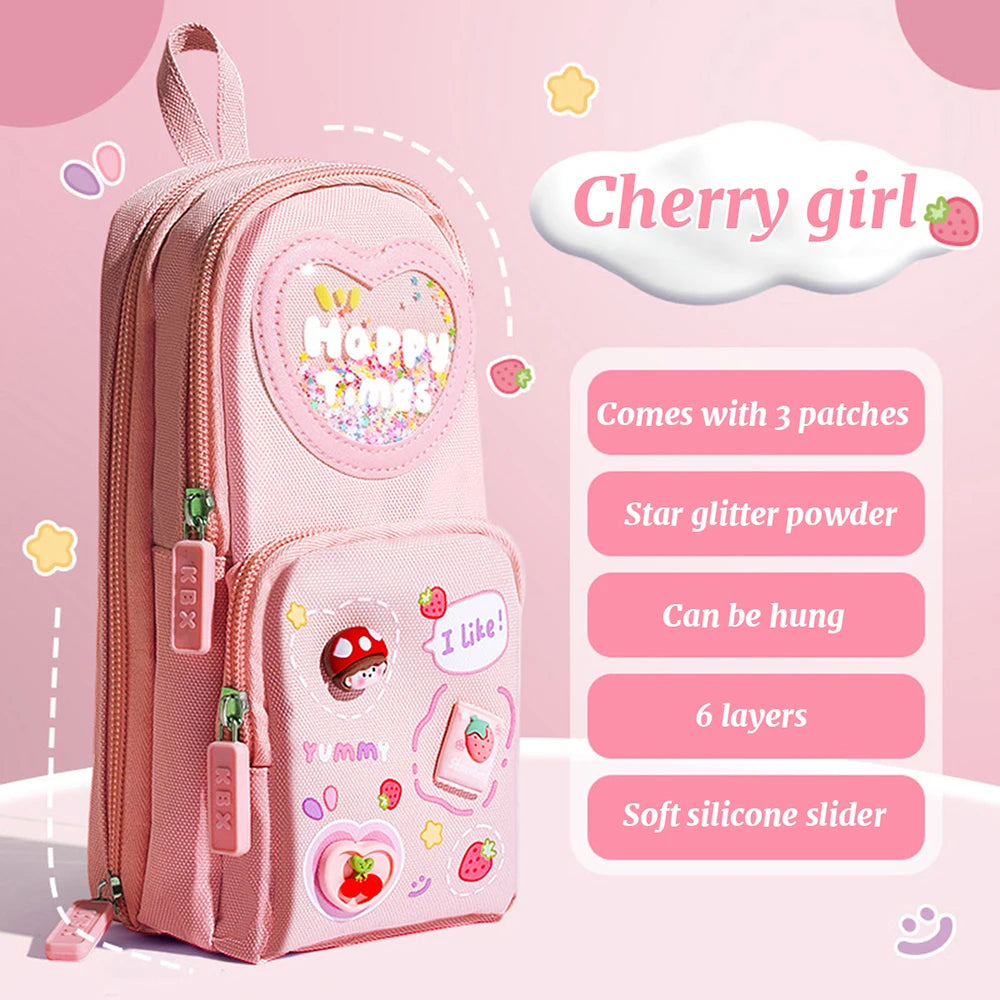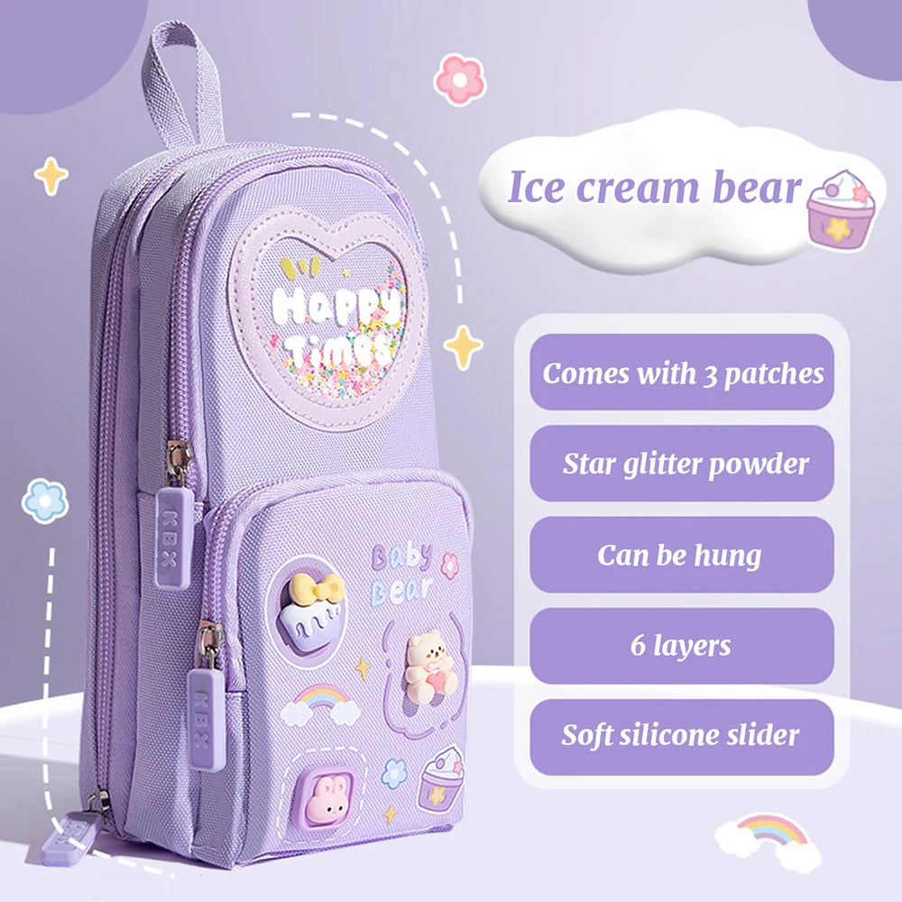 Three Layer Backpack Shape Pencil Case Large Capacity Cute Cartoon Simple for Girls School Students Stationery Supplies