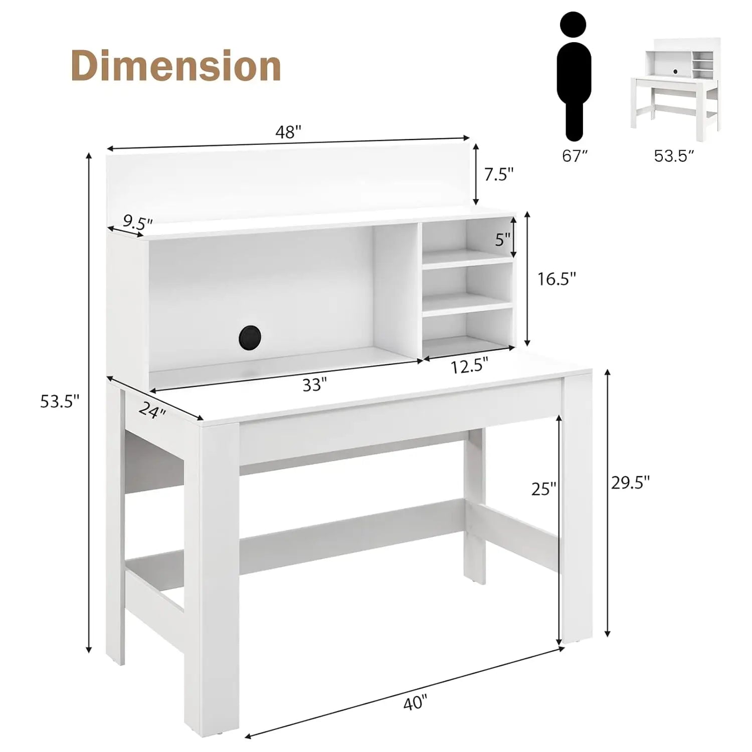 Spacious Storage Space: The 48” long desktop provides plenty of space for your laptop or PC. This study table features a storage hutch with partitions that organizes various supplies neatly, leaving ample table surface. These shelves keep books, plants, or scattered items within arm’s reach and make your working area tidy and in order.