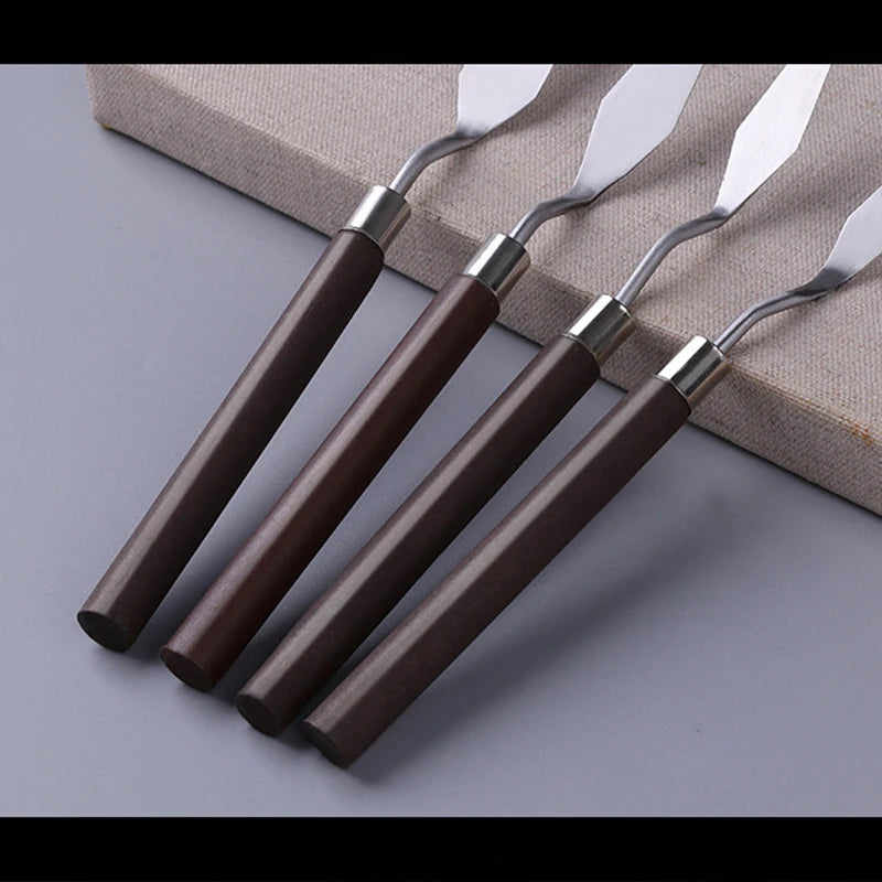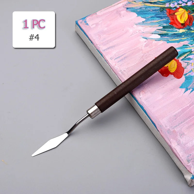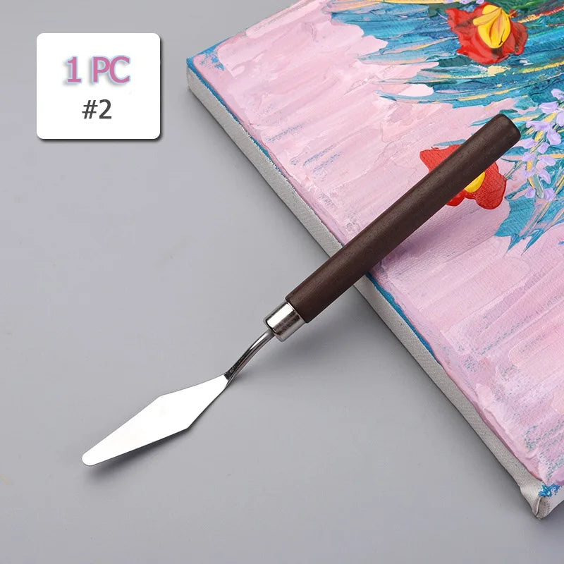 Wooden Handle Oil Paint Shovel Stainless Steel Scraper Kit Palette Knife Stationery for Painter Students